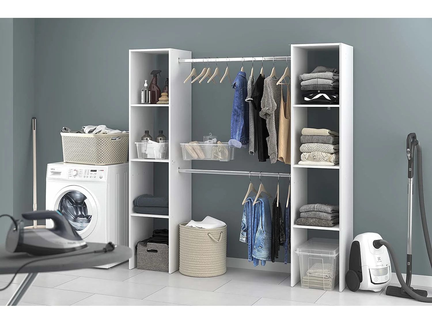 Dressing blanc 6 étagères, 2 penderies 180 x 40 x 180 cm ELYSEE