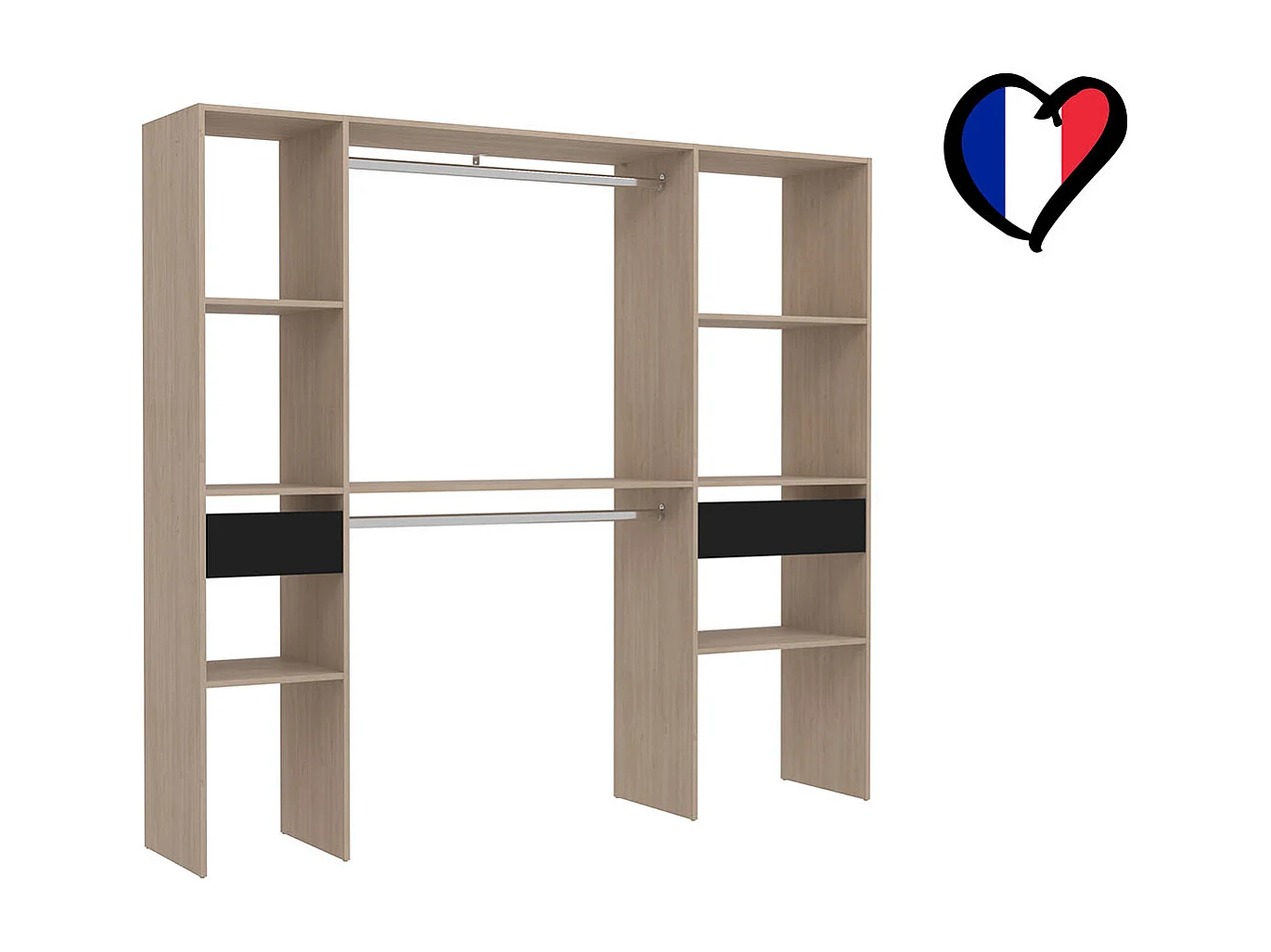 Dressing bois avec 2 penderies, 6 étagères et 2 tiroirs ELYSEE