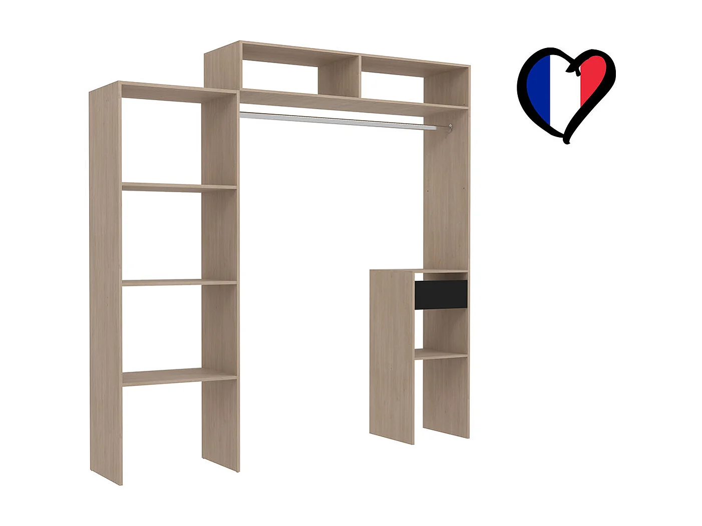 Dressing bois extensible avec penderie, étagères et tiroirs ELYSEE