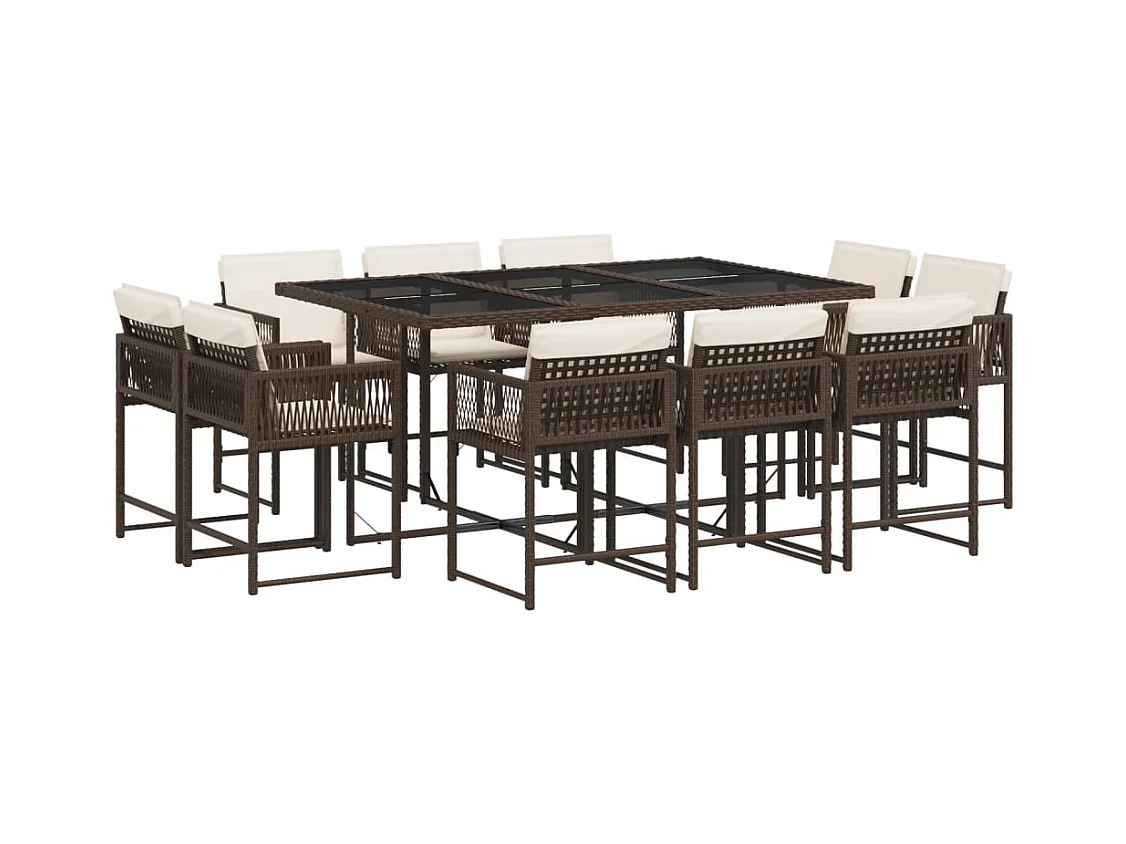 Jeroen Ensemble à manger de jardin et coussins 11 pcs marron rotin