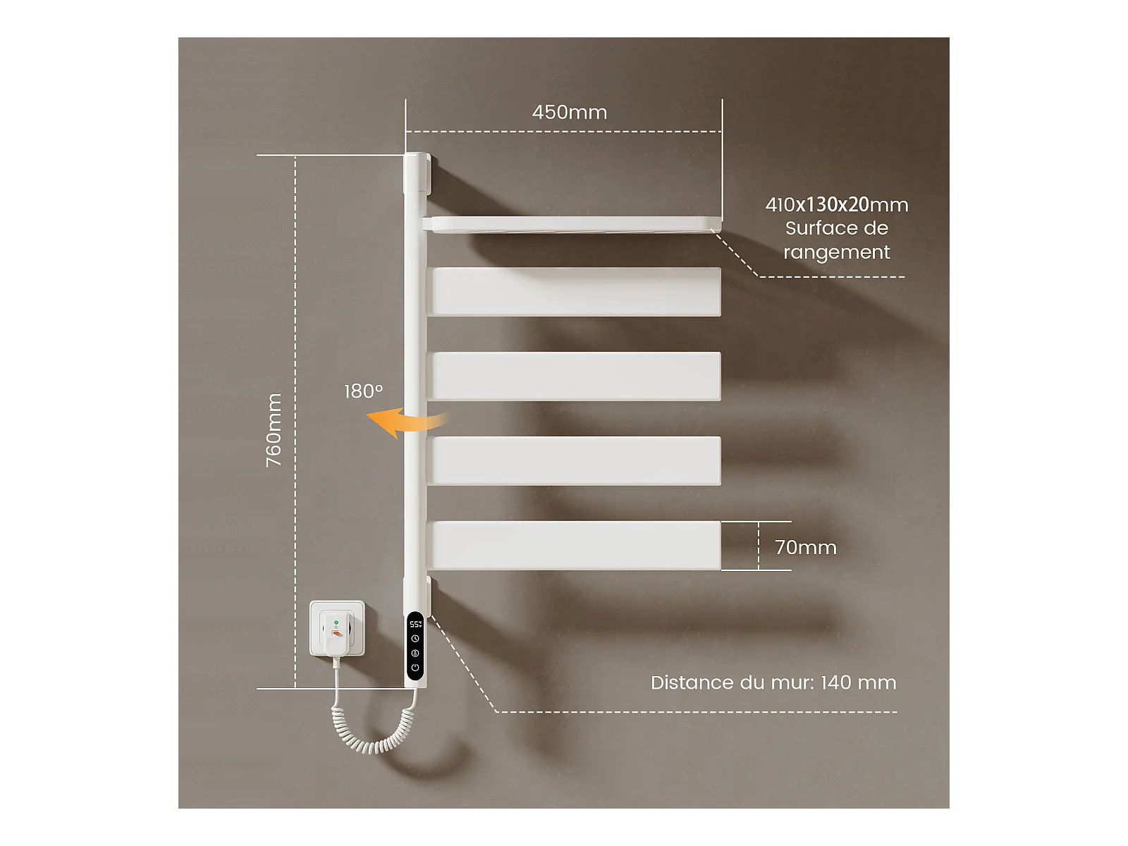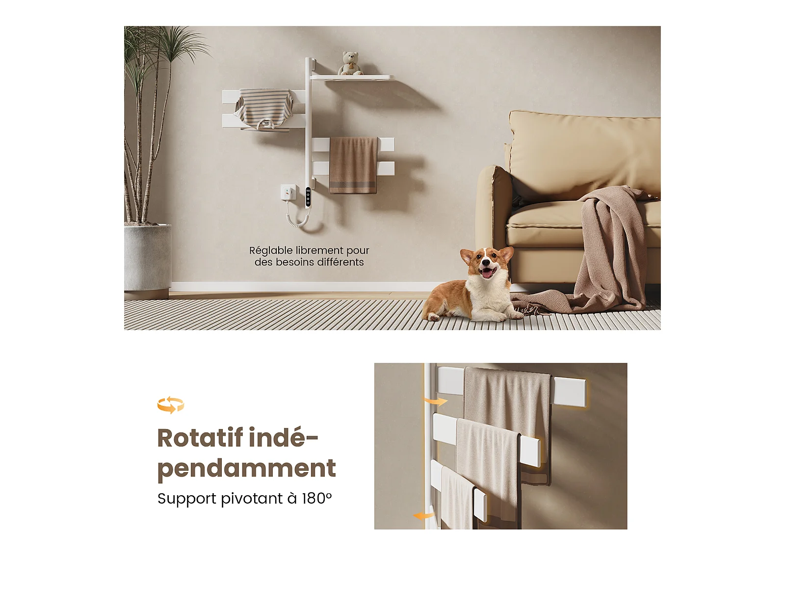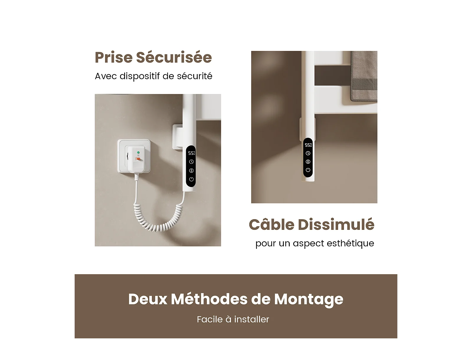 EMKE Sèche-Serviettes Électrique 960 x 400 mm, Porte-serviettes de salle de bain électrique avec interrupteur tactile et minuterie, Blanc, 300W