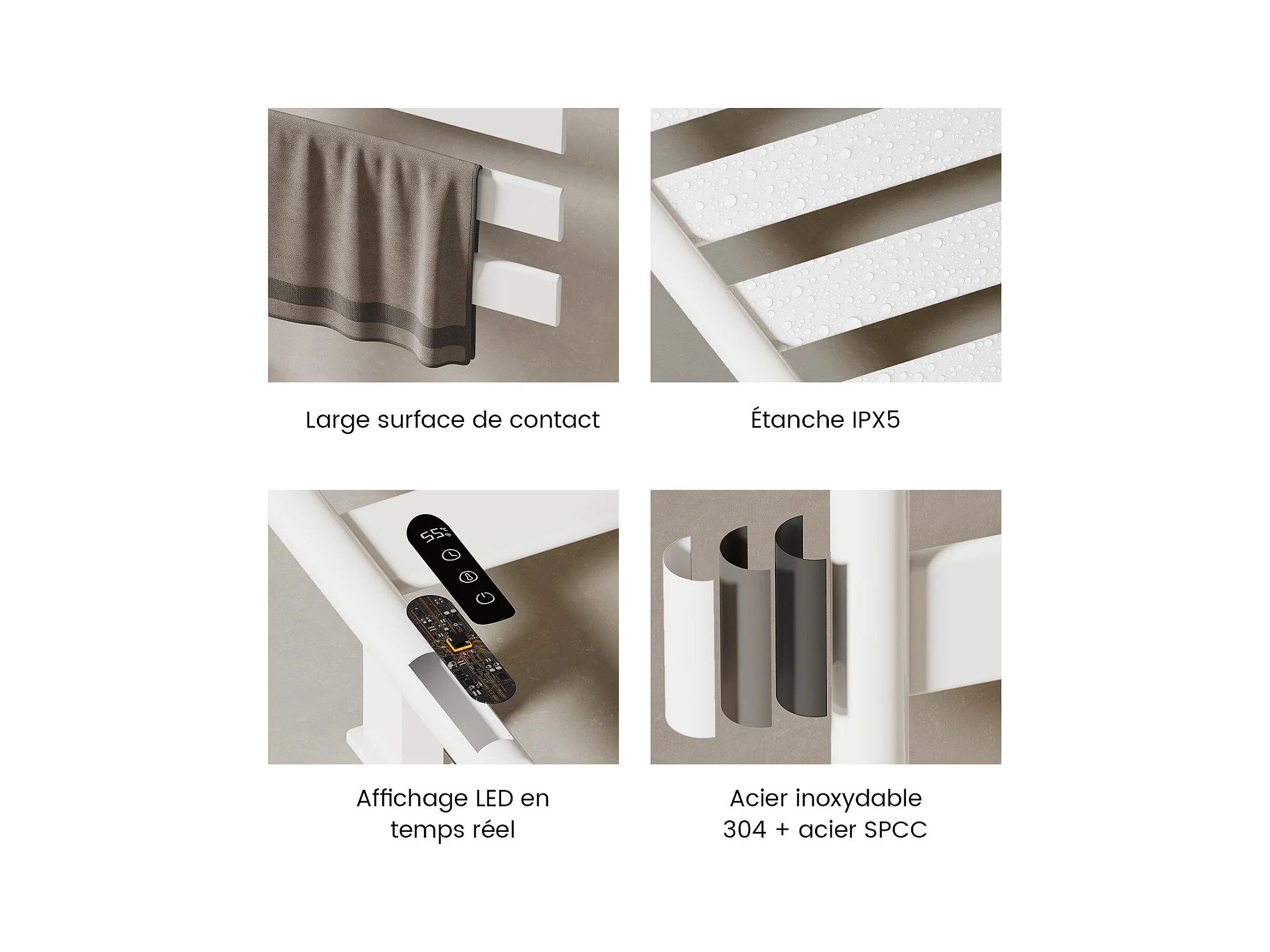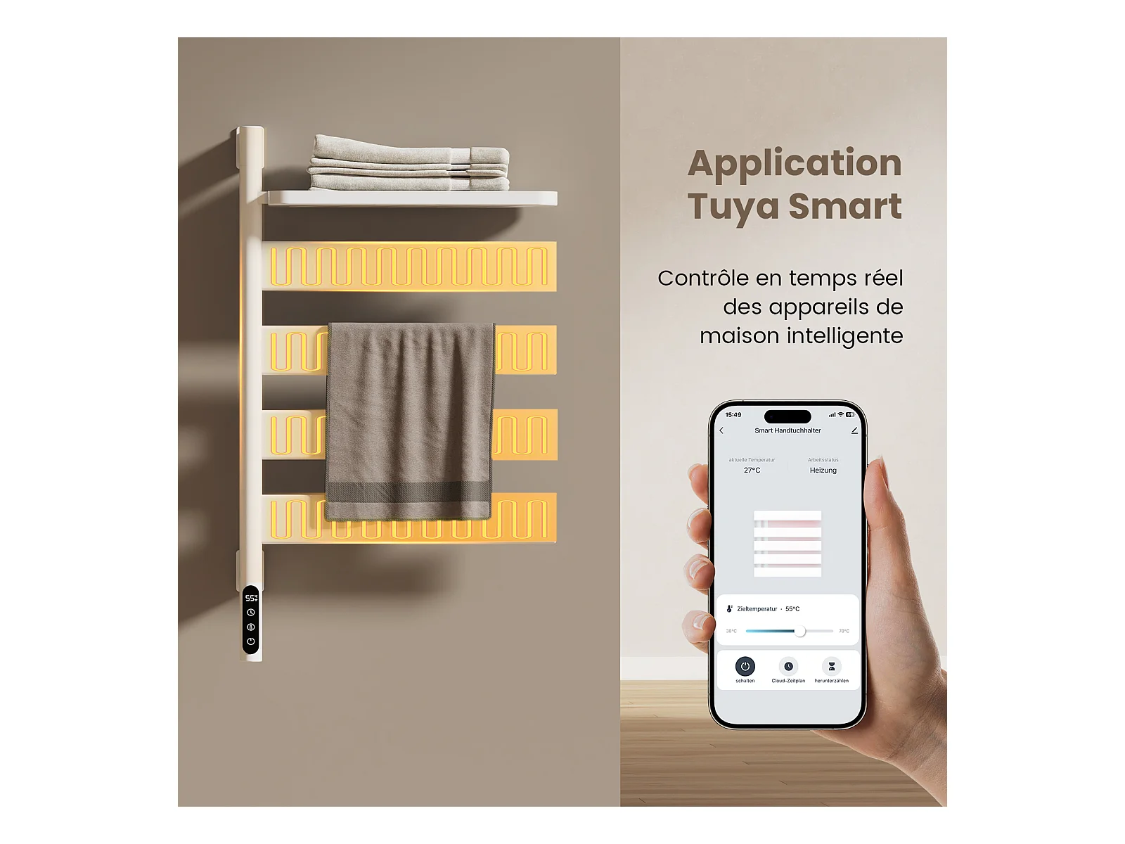 EMKE Chauffe-serviettes Électrique 76×45cm, Thermostat Intelligent WiFi, Radiateur Électrique pour Salle de Bain, Chauffe-serviettes Électrique, Blanc