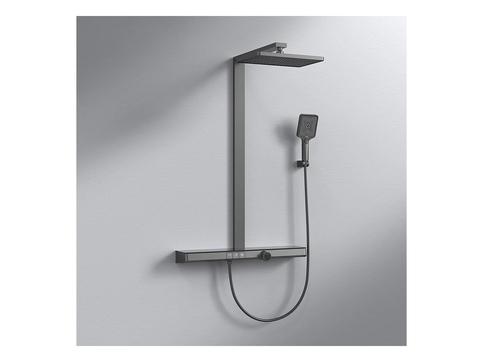 EMKE Colonne de Douche Theramostat 38°C verrouillage de sécurité douche de pluie avec mitigeur, avec tablette extra large, homologué KTW, Anthracite