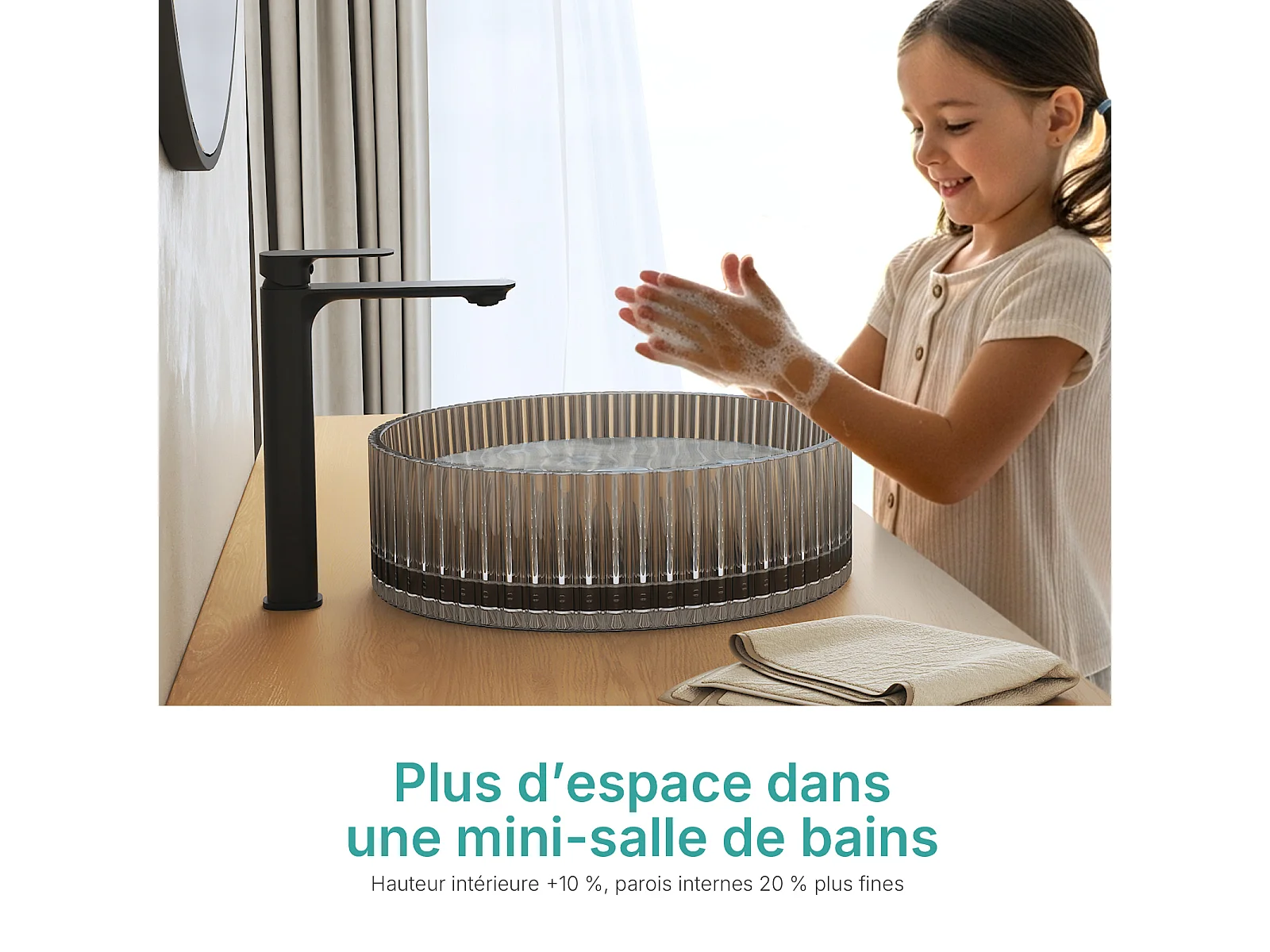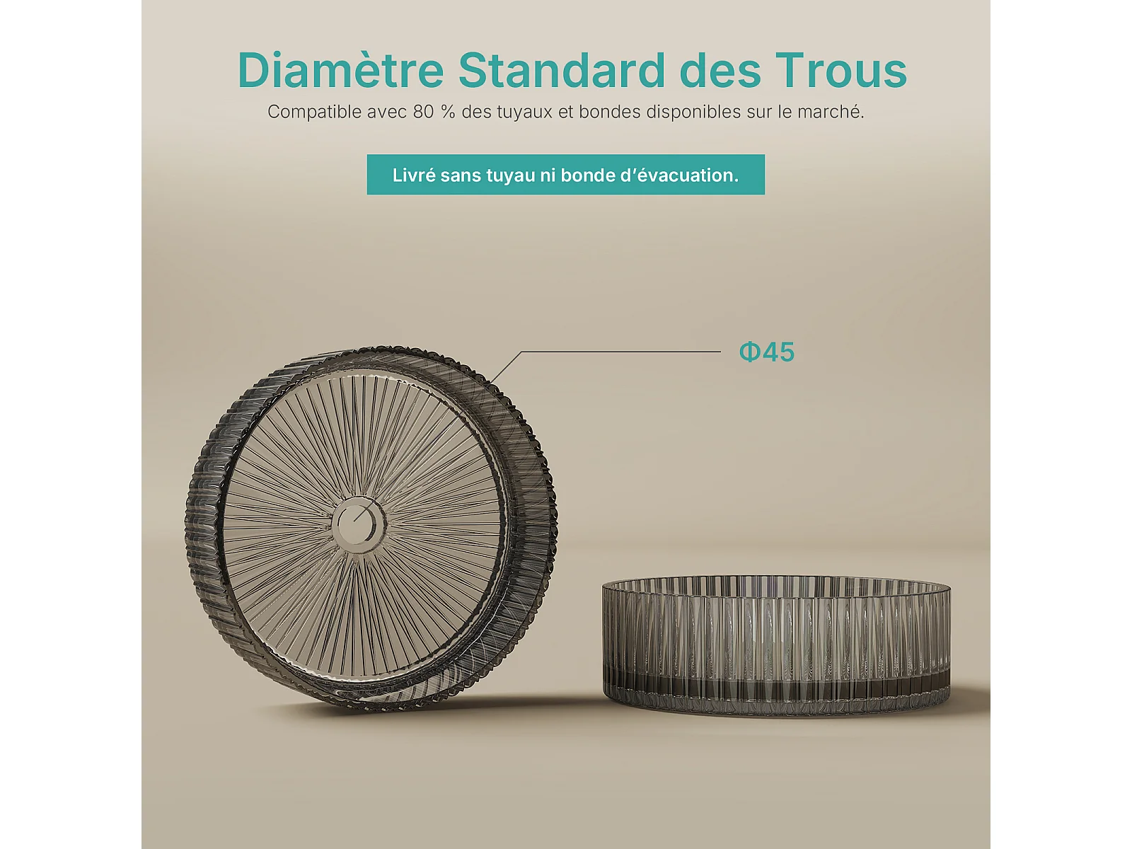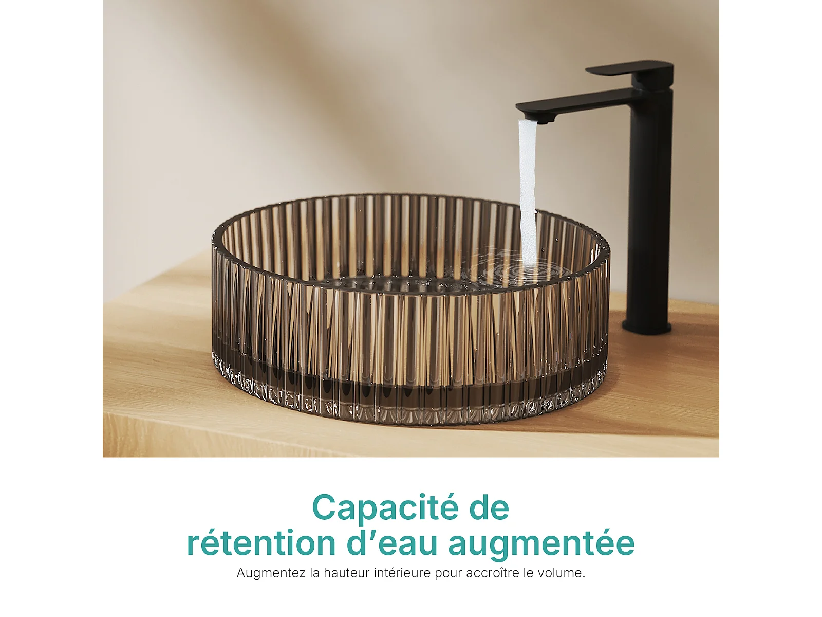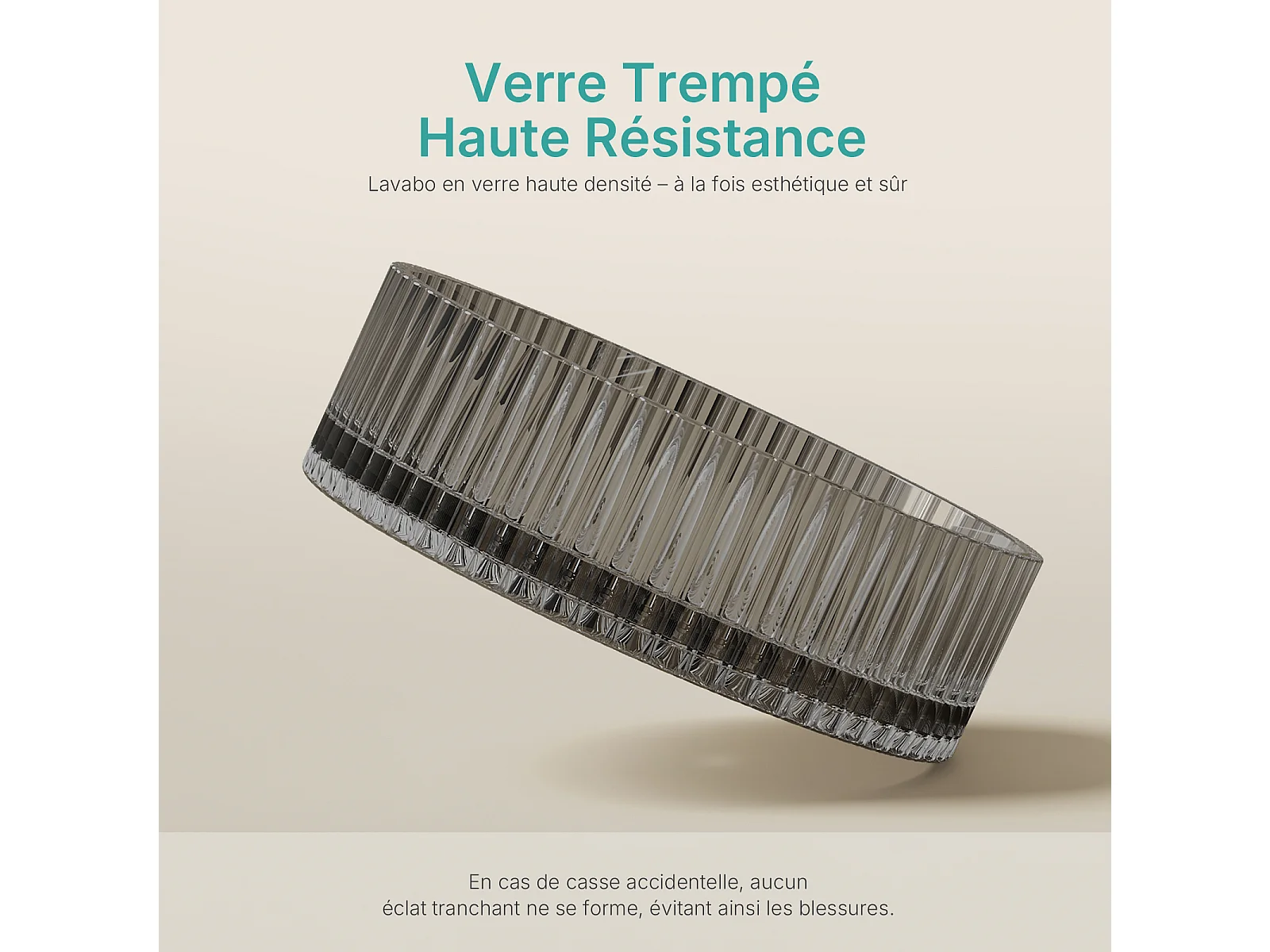 EMKE Lavabo en Verre Trempé Rond à Poser 400x400x120 mm, Vasque Salle de Bain, Mat Noir