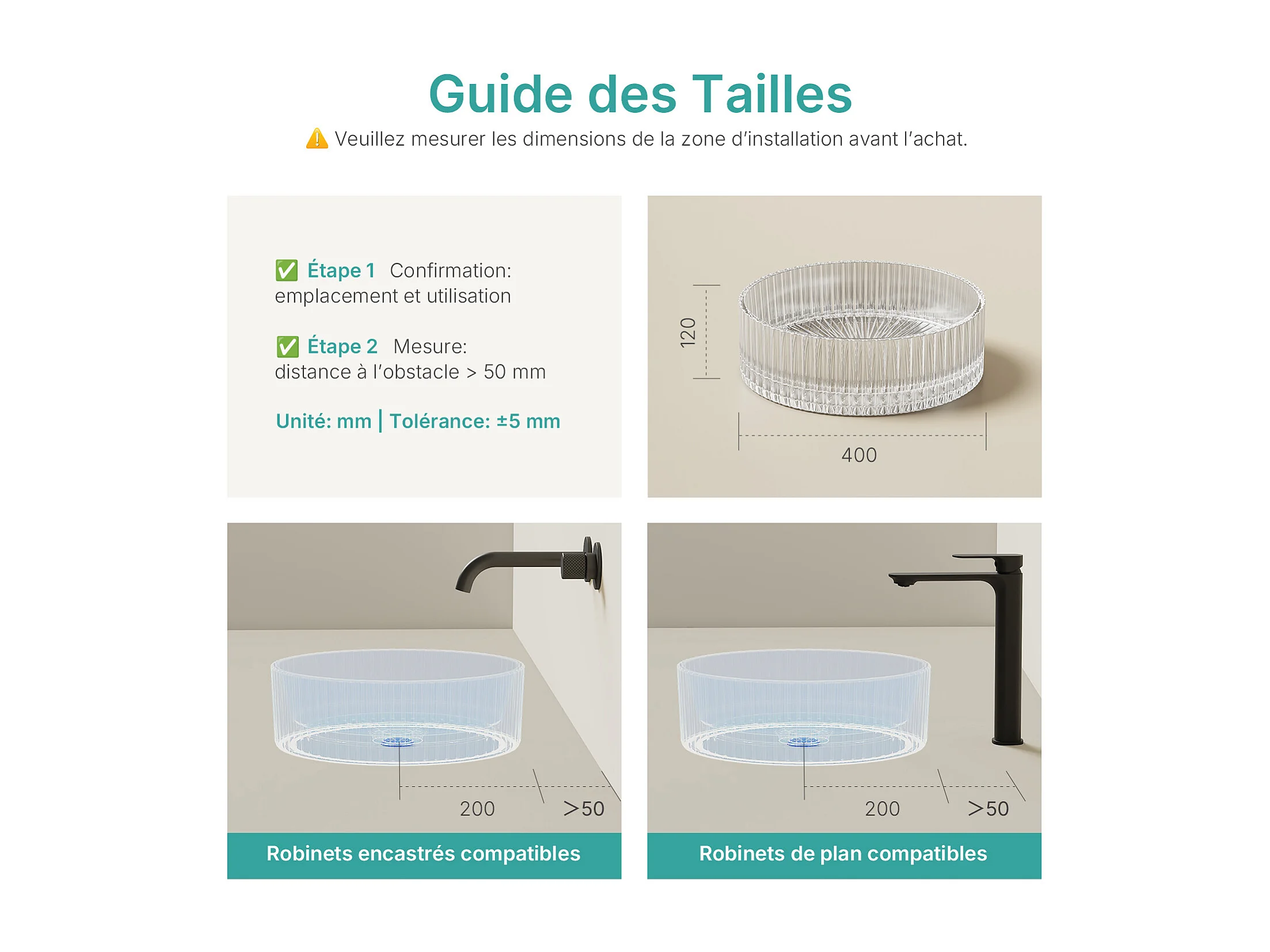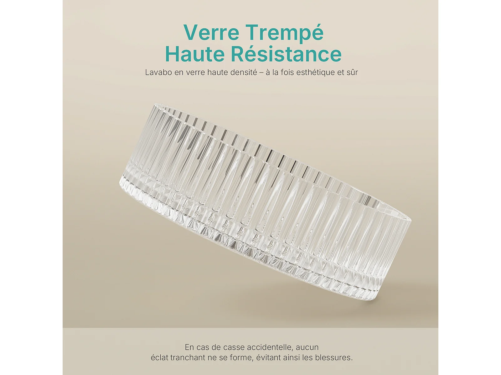 EMKE Lavabo en Verre Trempé Rond à Poser 400x400x120 mm, Vasque Salle de Bain, Transparent