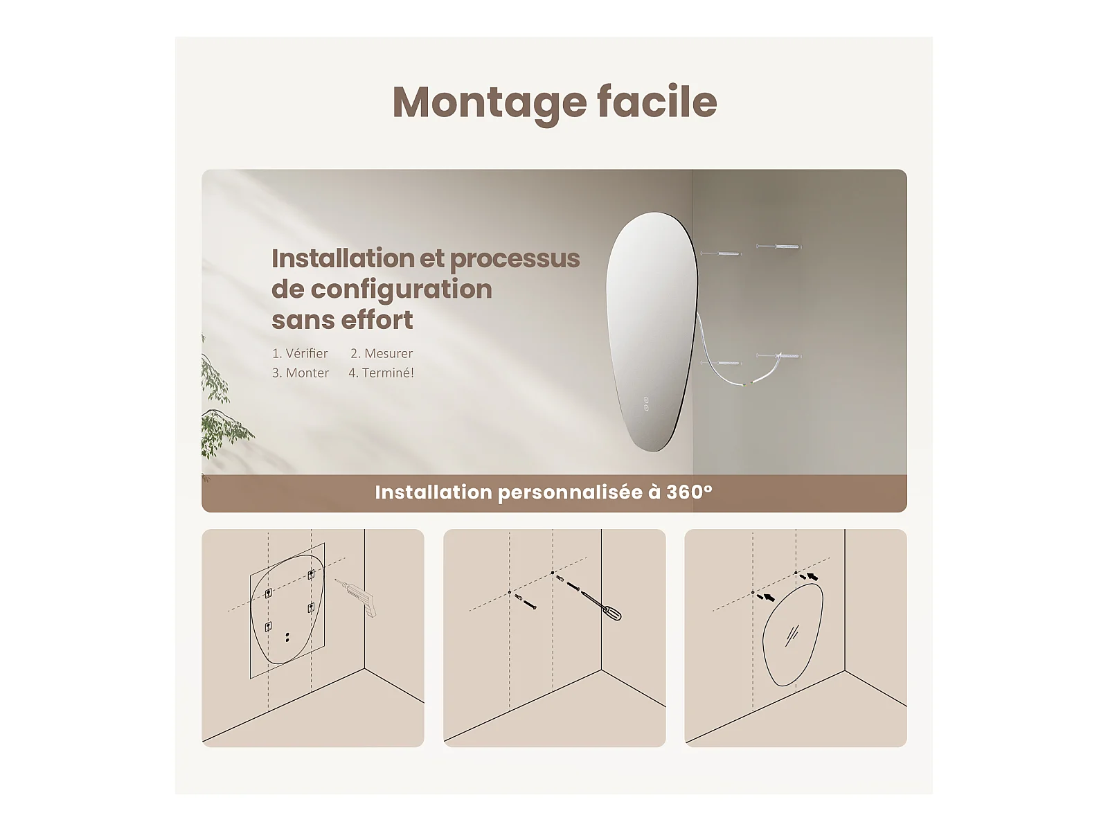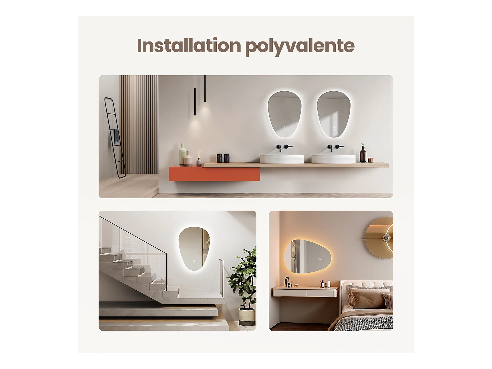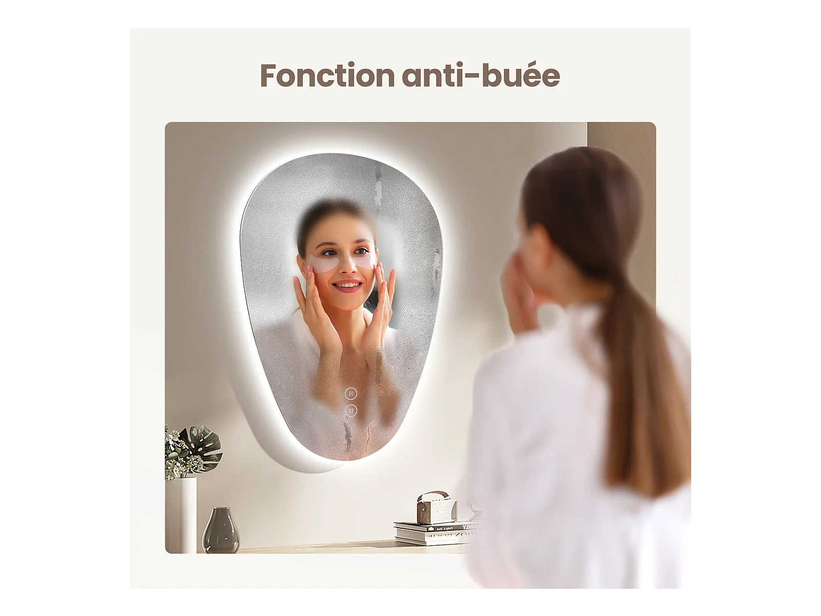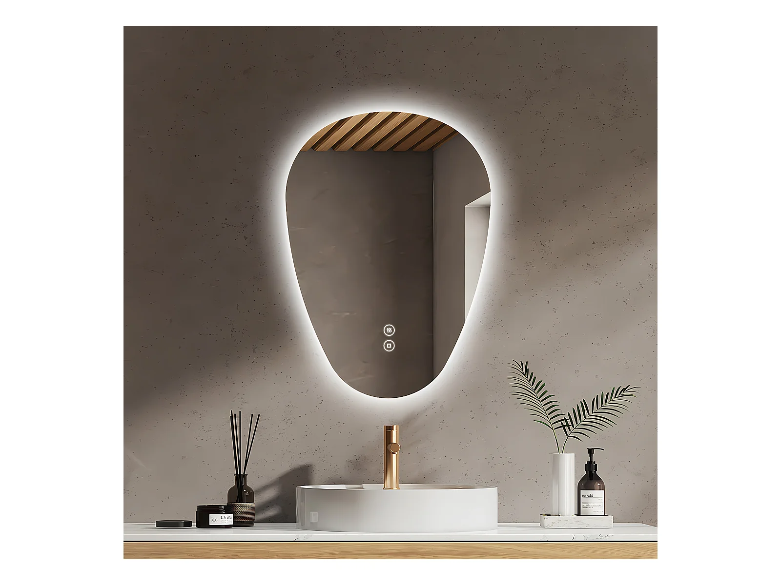 EMKE Miroir Salle de Bain avec Éclairage, 70 x 50 cm, Miroir LED Asymétrique, Interrupteur Tactile, 3 Couleurs de Lumière Réglables, Miroir Anti-Buée