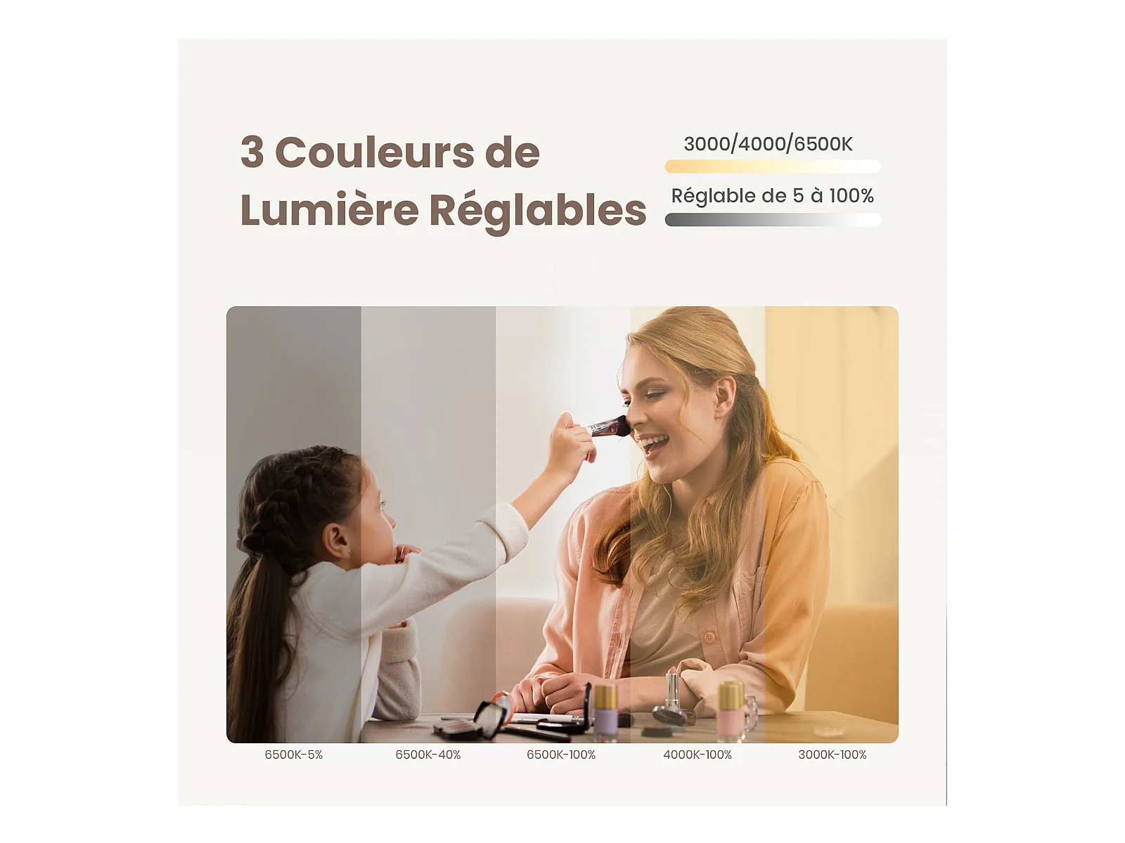 EMKE Miroir lumineux salle de bain sans cadre 50x45cm , Miroir LED avec Interrupteur Tactile, Anti-buée, Miroir avec 3 couleurs Lumières