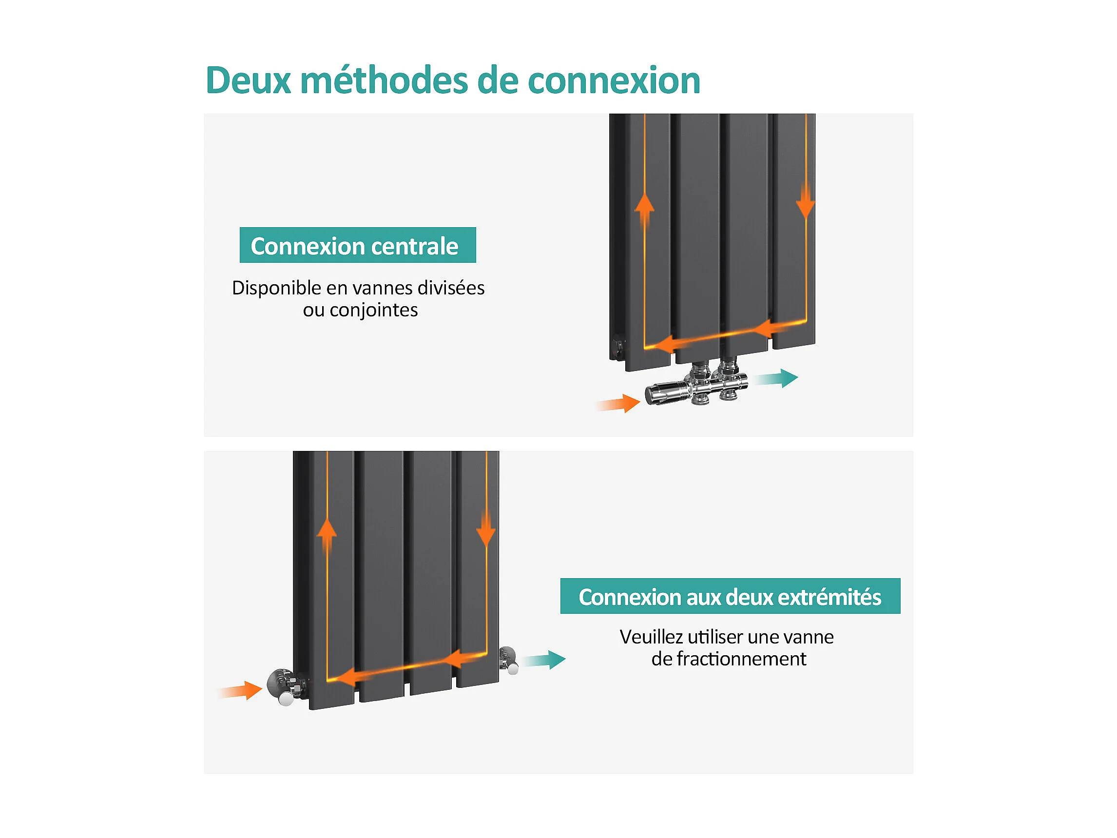EMKE Sèche-serviettes à Eau Chaude Panneau Plat, Sèche-serviettes connexion latérale pour, Anthracite 1599x500mm 794Watts