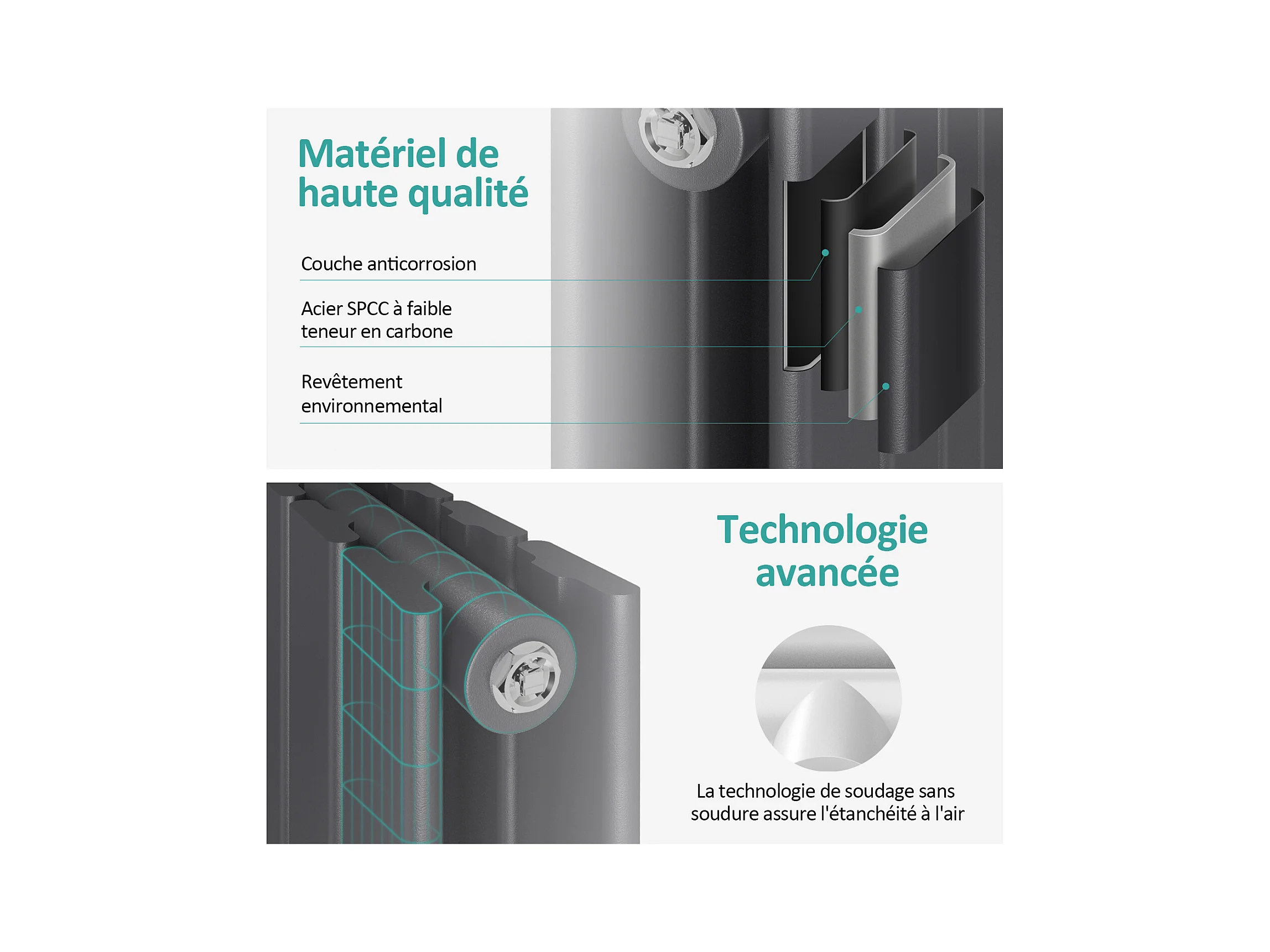 EMKE Radiateur eau chaude horizontal en acier H.60 × L.84 cm 1383 W Le design Chauffage central anthracite