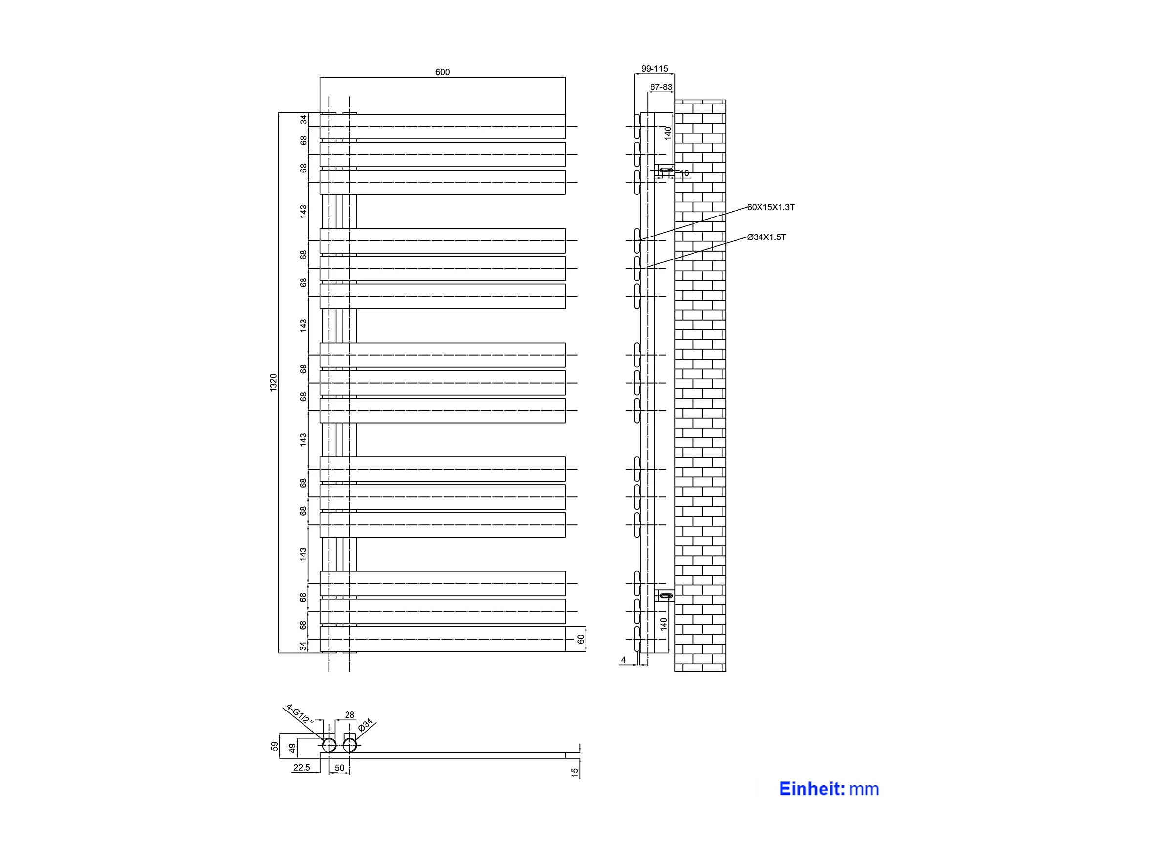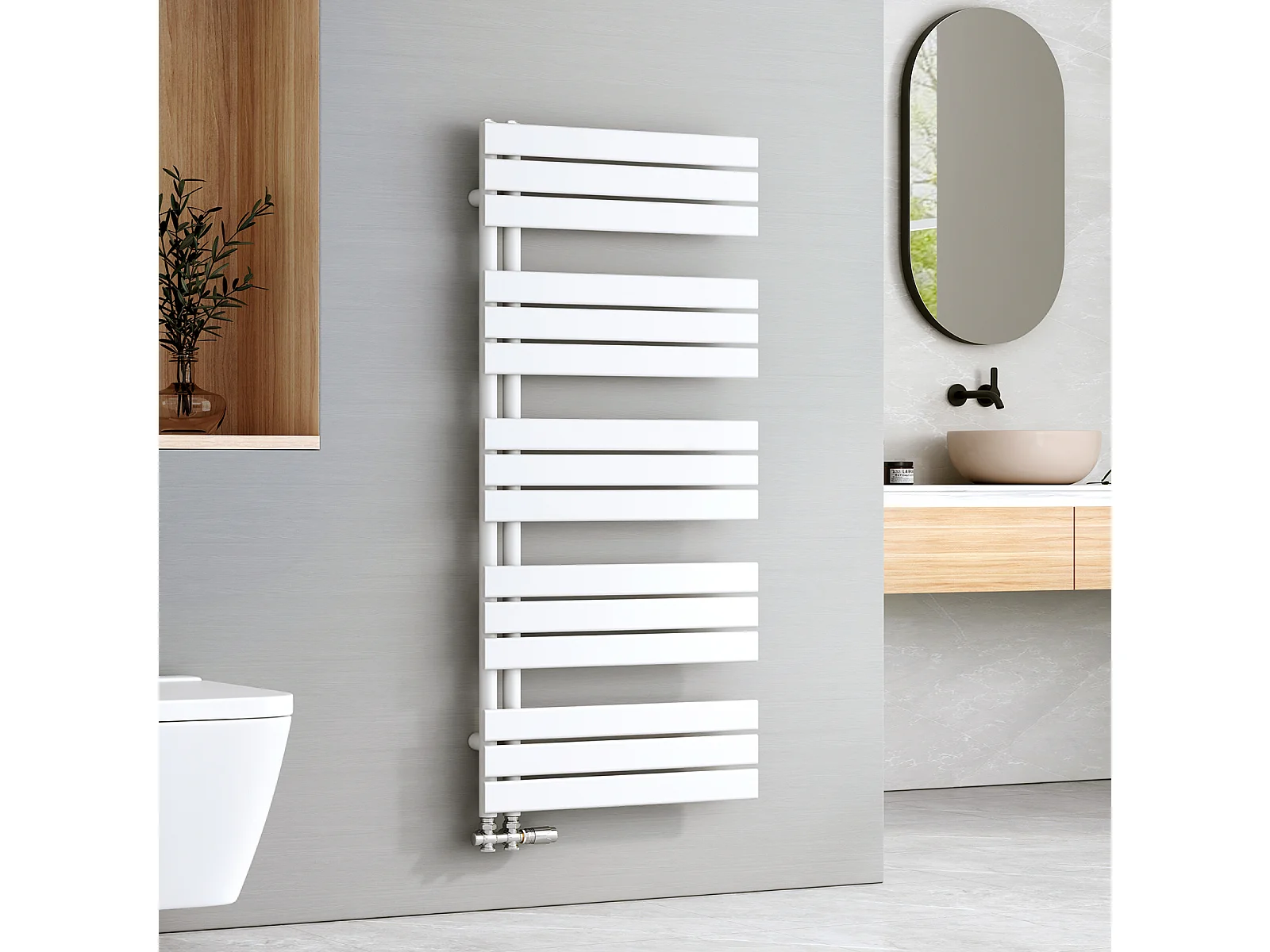 EMKE Sèche-serviettes à Eau Chaude Panneau Plat, Sèche-serviettes connexion latérale pour, Blanc 1320x600mm 798Watts