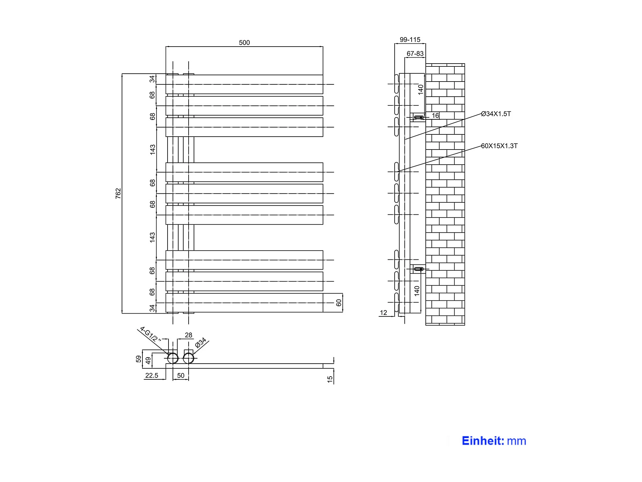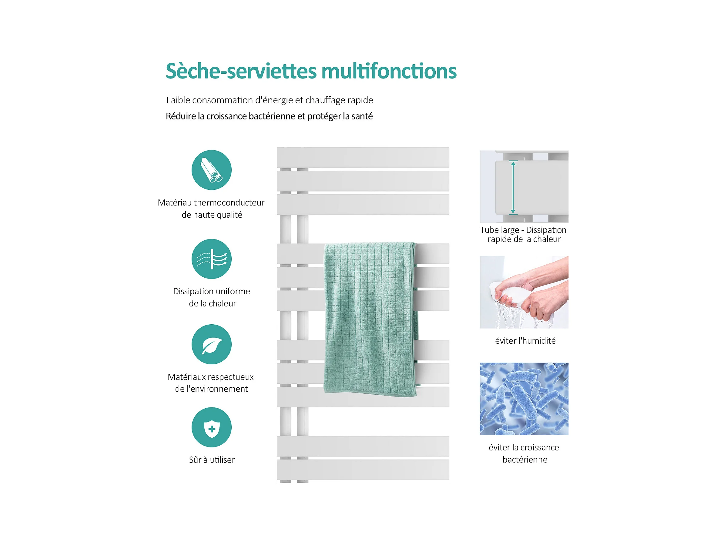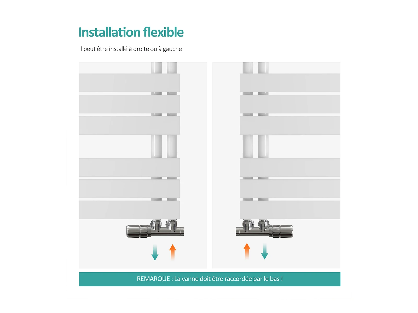 EMKE Sèche-serviettes à Eau Chaude Panneau Plat, Sèche-serviettes connexion latérale pour, Blanc 762 x 500mm 397 Watts