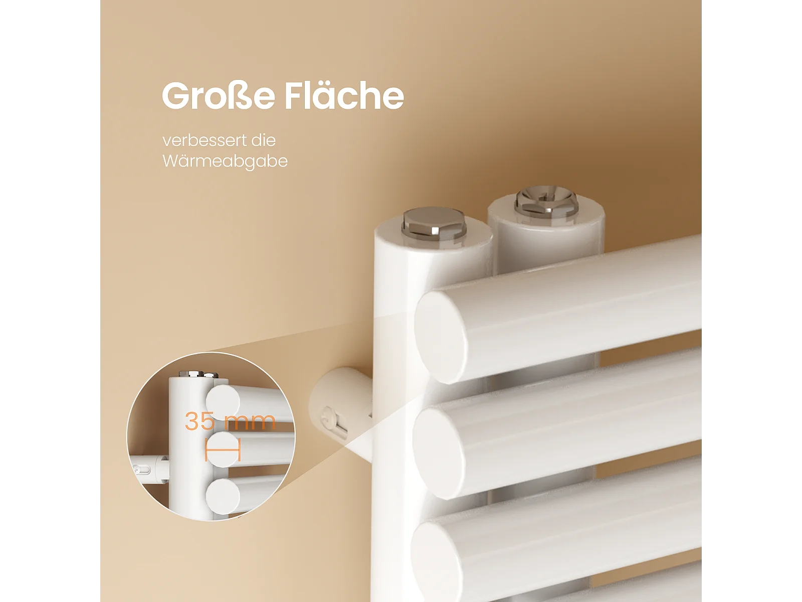 EMKE Sèche Serviettes à Eau Chaude pour Salle de Bain, 1660 x 600 mm, Tuyaux Ronds Porte-Serviettes, Chauffe-Serviettes, Blanc 776W