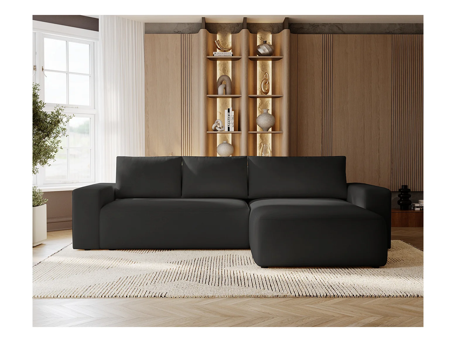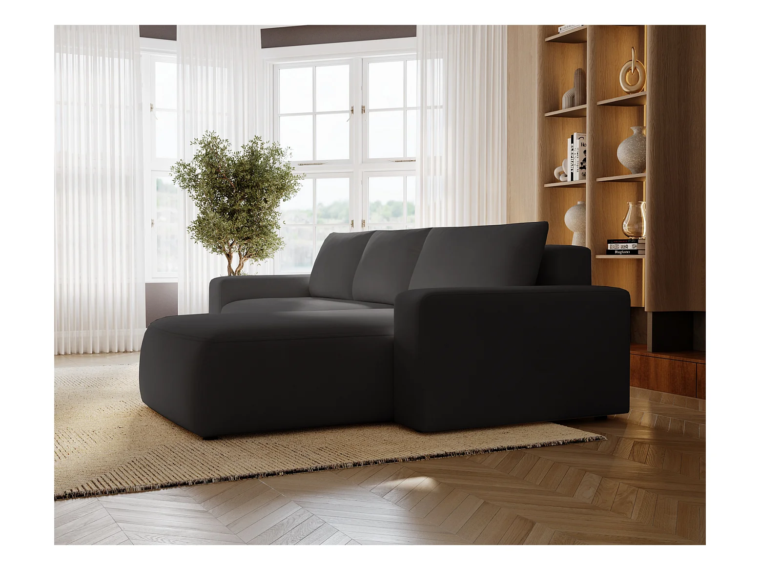 Emporius Dallas Canapé d'angle 270 cm, Convertible, Tissu Velours - Droite, Noir (Komodo 23)
