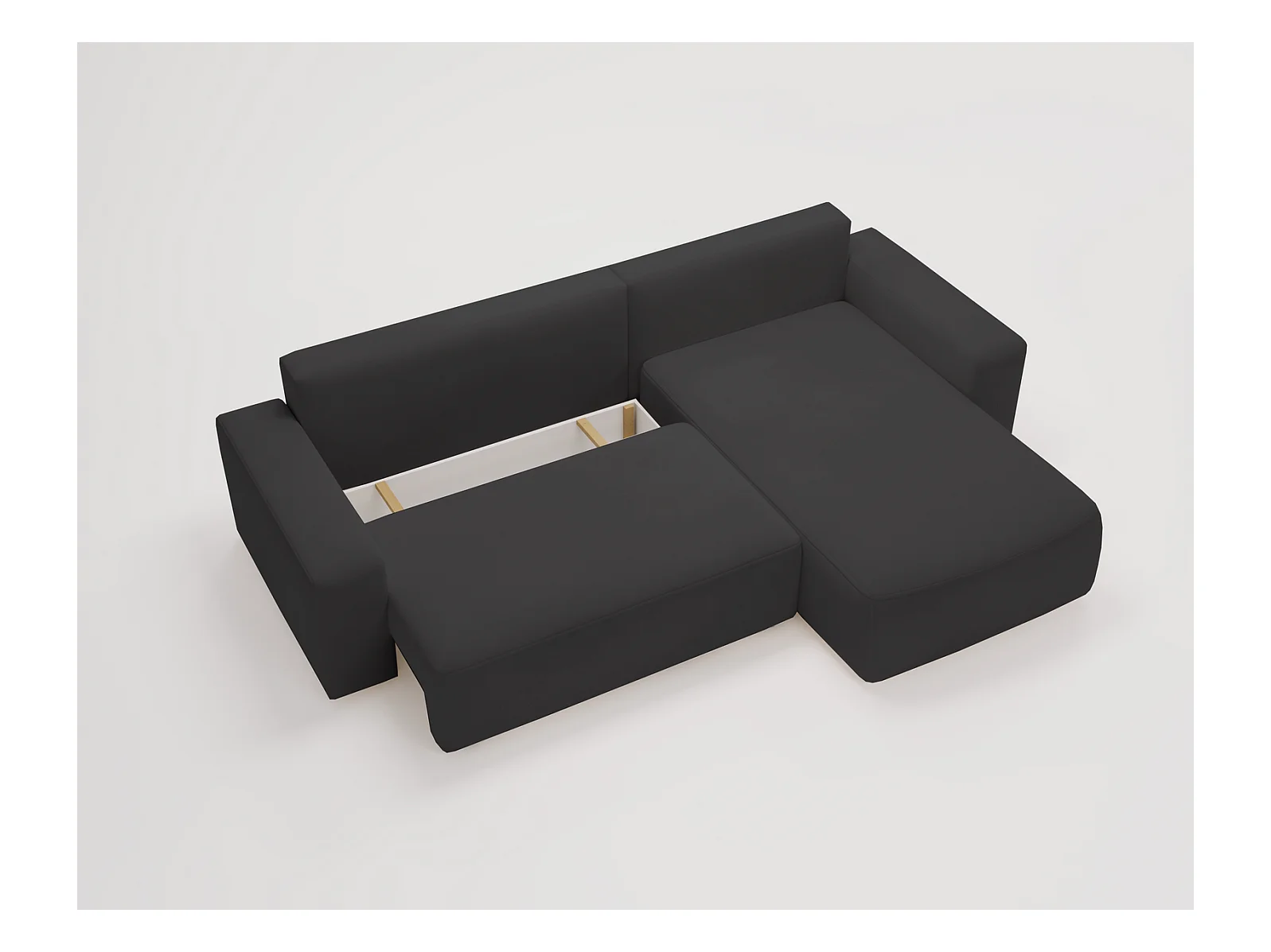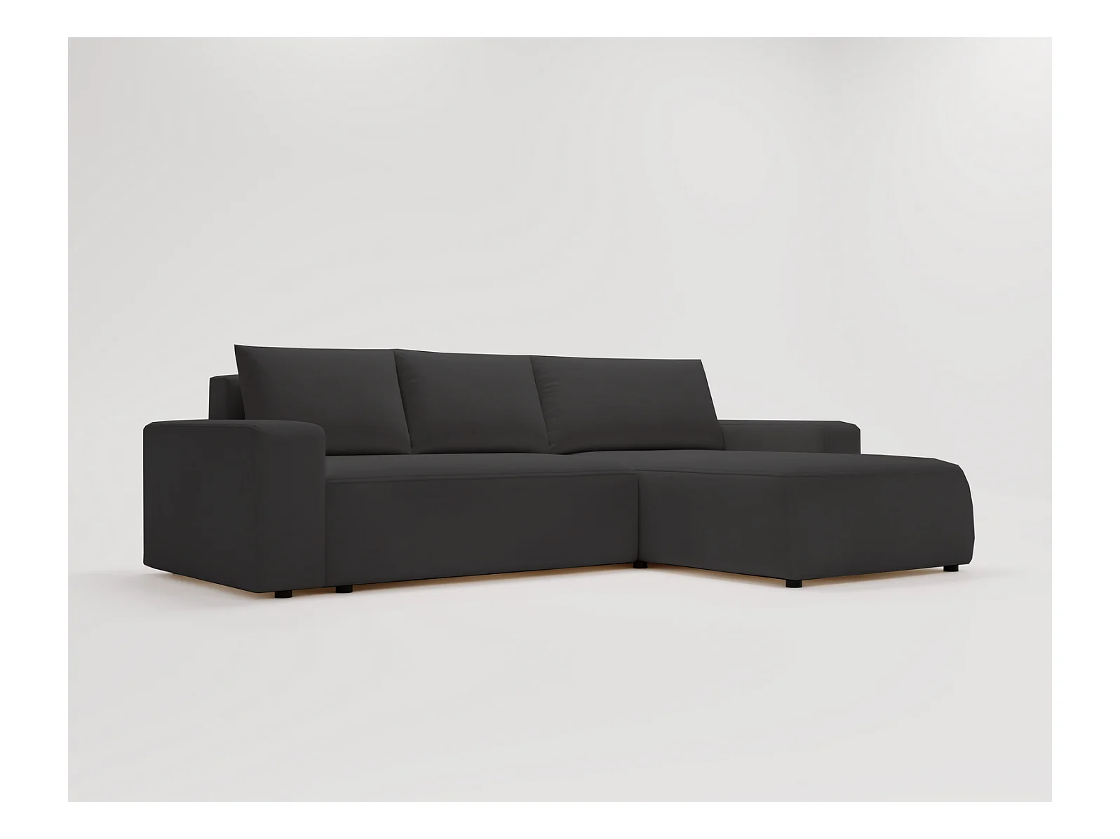 Emporius Wilson Canapé d'angle - Tissu Velours, Canapé 255 cm Convertible, Droite - Noir (Amor Velvet 4322)