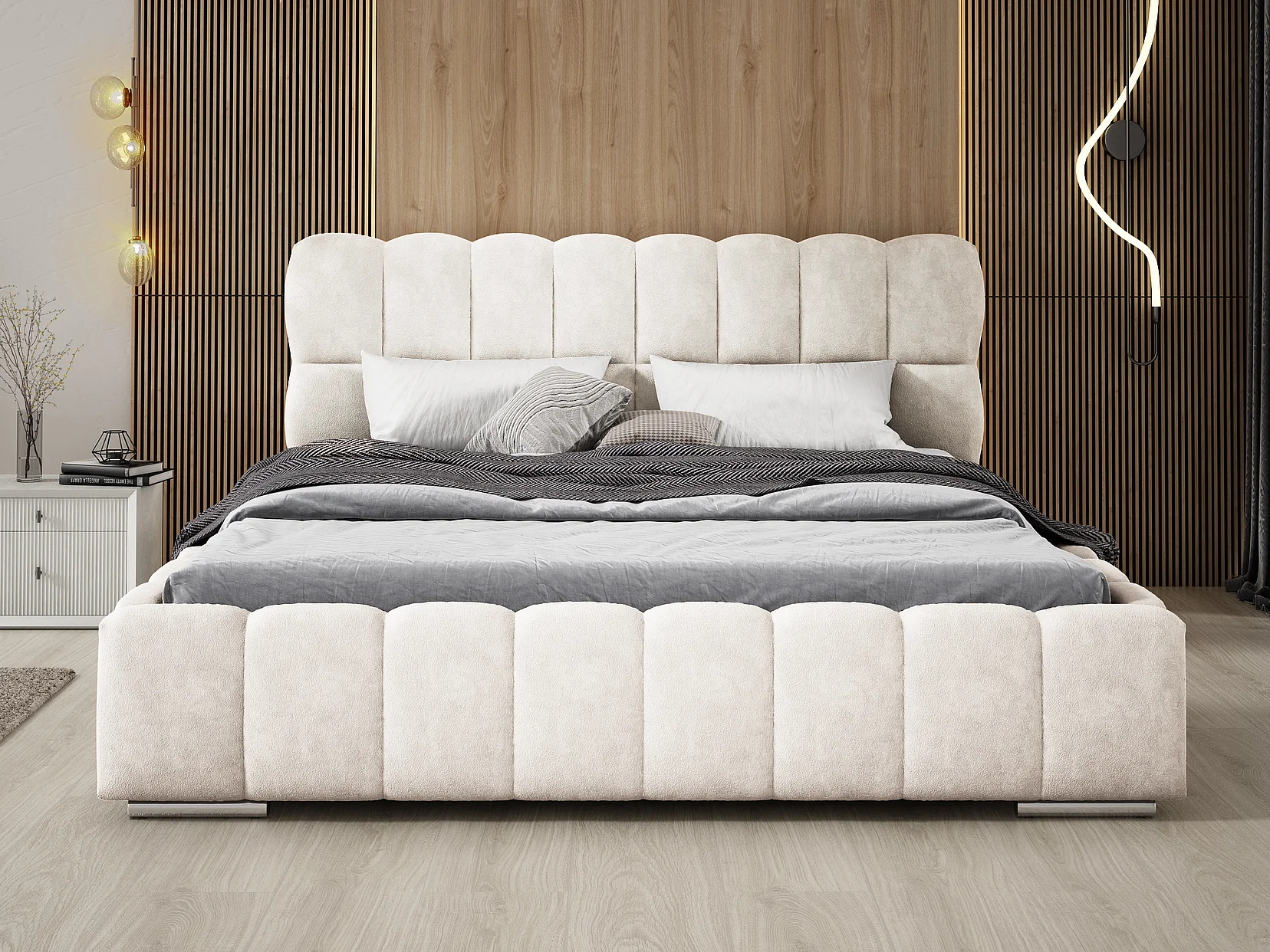 Emporius Avilla lit double 160x200 avec sommier à Lattes, avec rangement - lit rembourré 160 x 200, lit Crème (Komodo 10)
