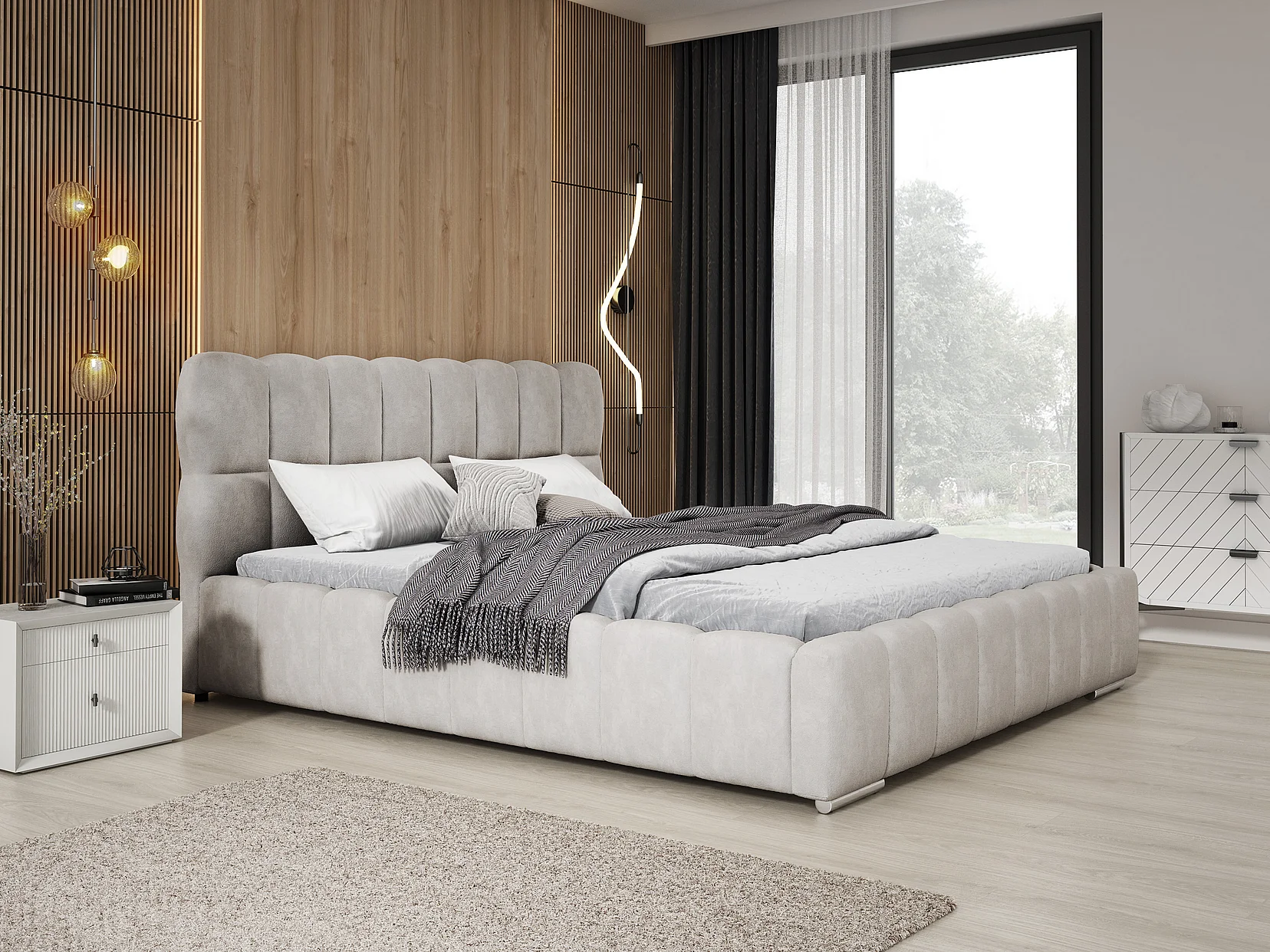 Emporius Avilla lit double 200x200 avec sommier à Lattes, avec rangement - lit rembourré 200 x 200, lit Gris clair (Komodo 20)
