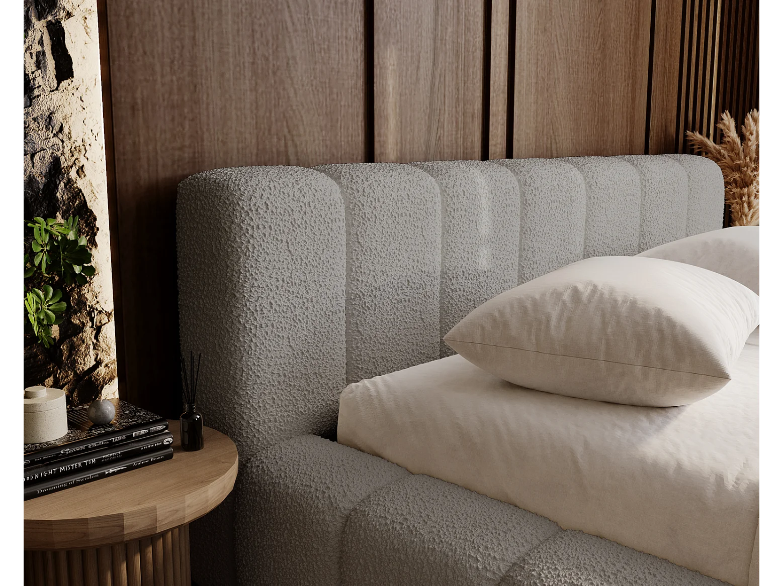 Emporius Bolonia lit capitonné 180x200 - lit bouclé 180x200 avec rangement, sommier à lattes - Gris clair (Anthology 15)