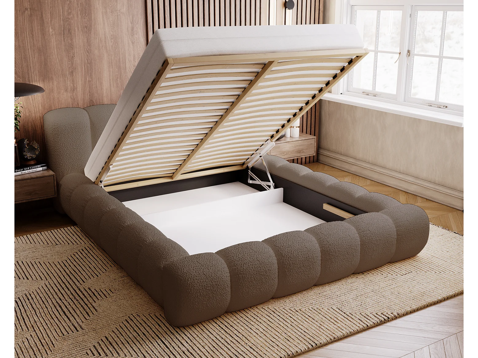 Emporius Cloud Lit rembourré 140x200 - Lit coffre avec rangement et sommier à lattes - Lit double 140x200 cm, tissu bouclé Brun (Anthology 5)