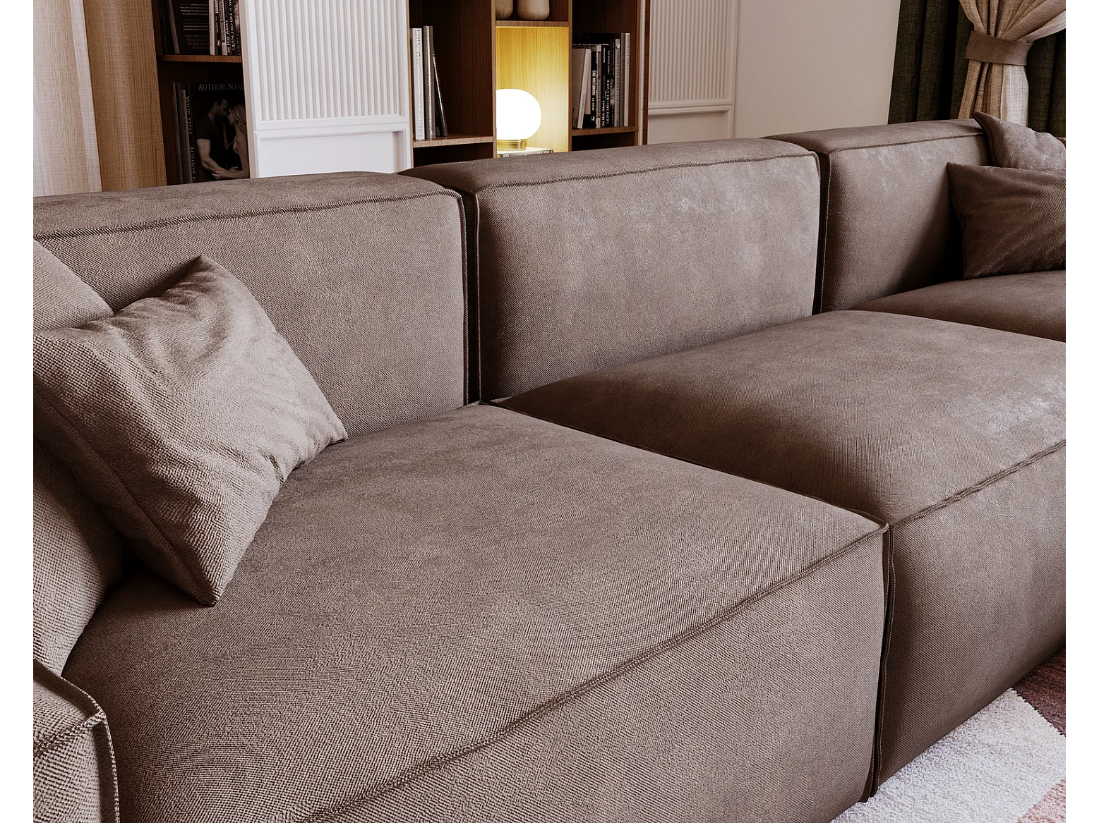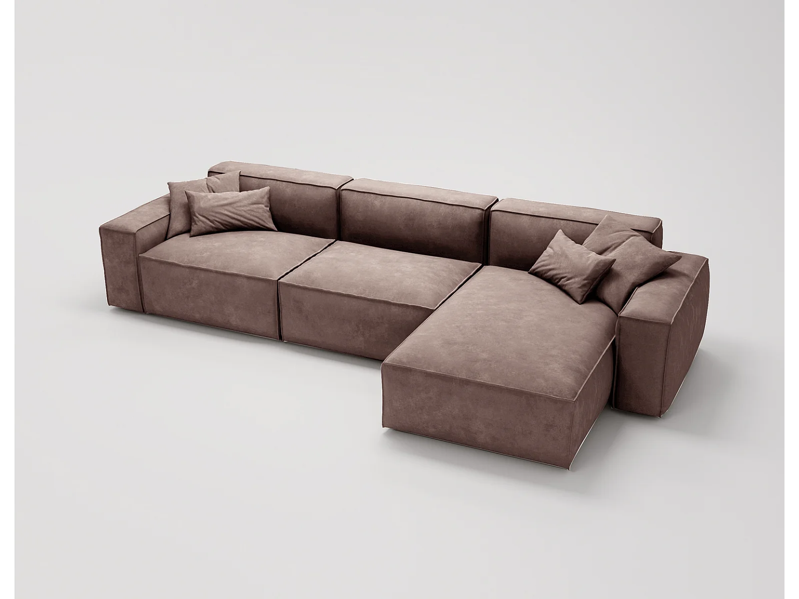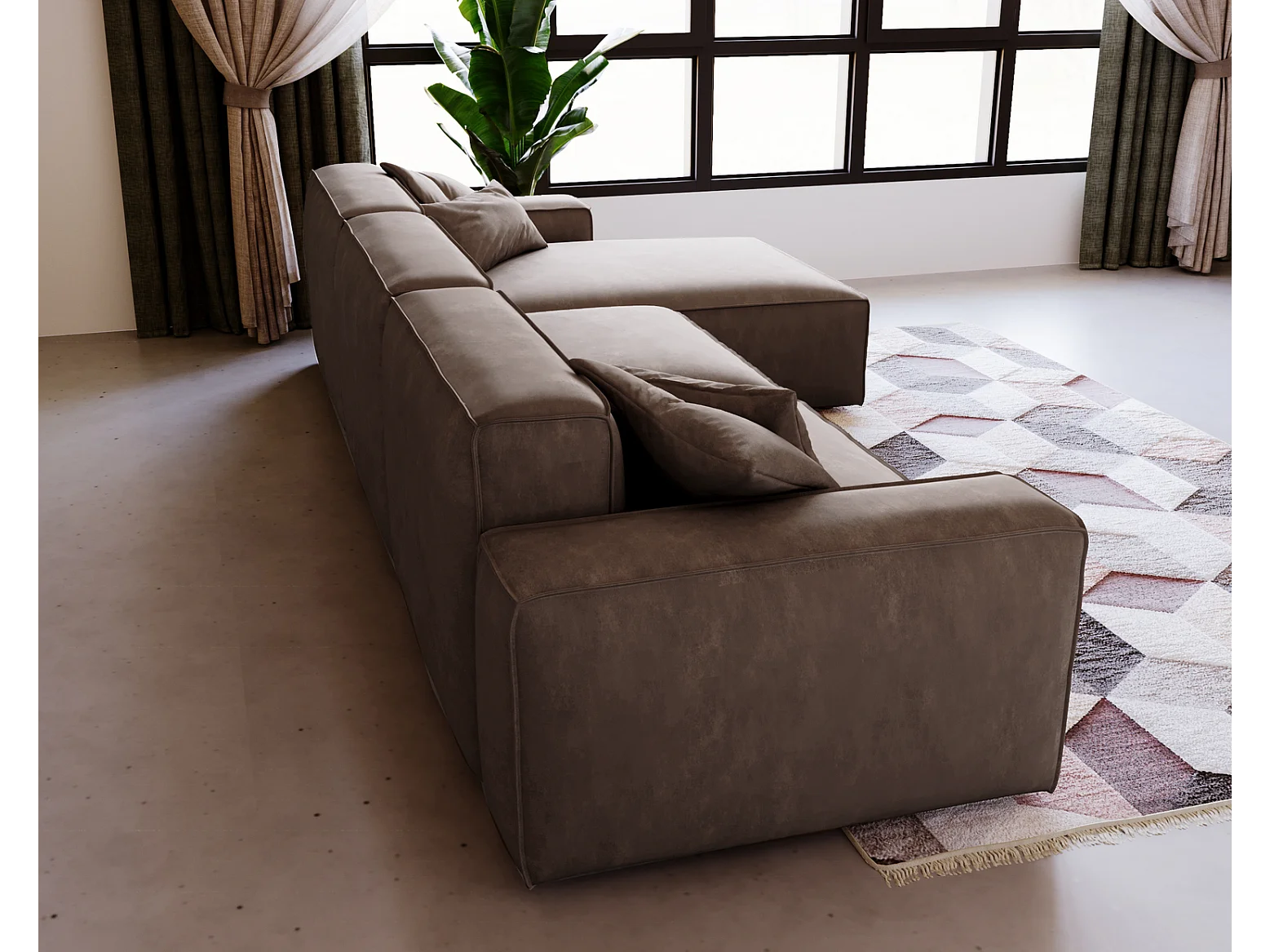 Emporius Figo Droit Canapé d'angle en Velours, Design, Modern - Canapé d'angle 265x180 cm Brun (Whisper 5)