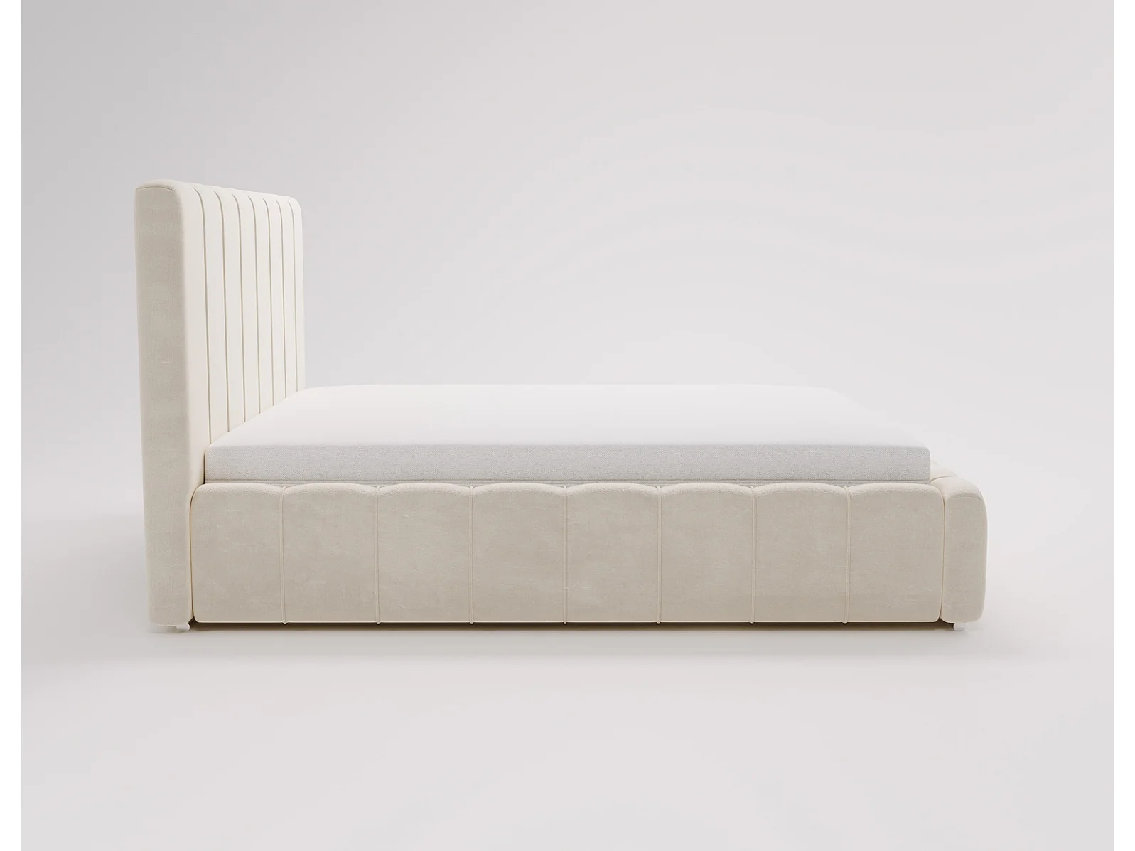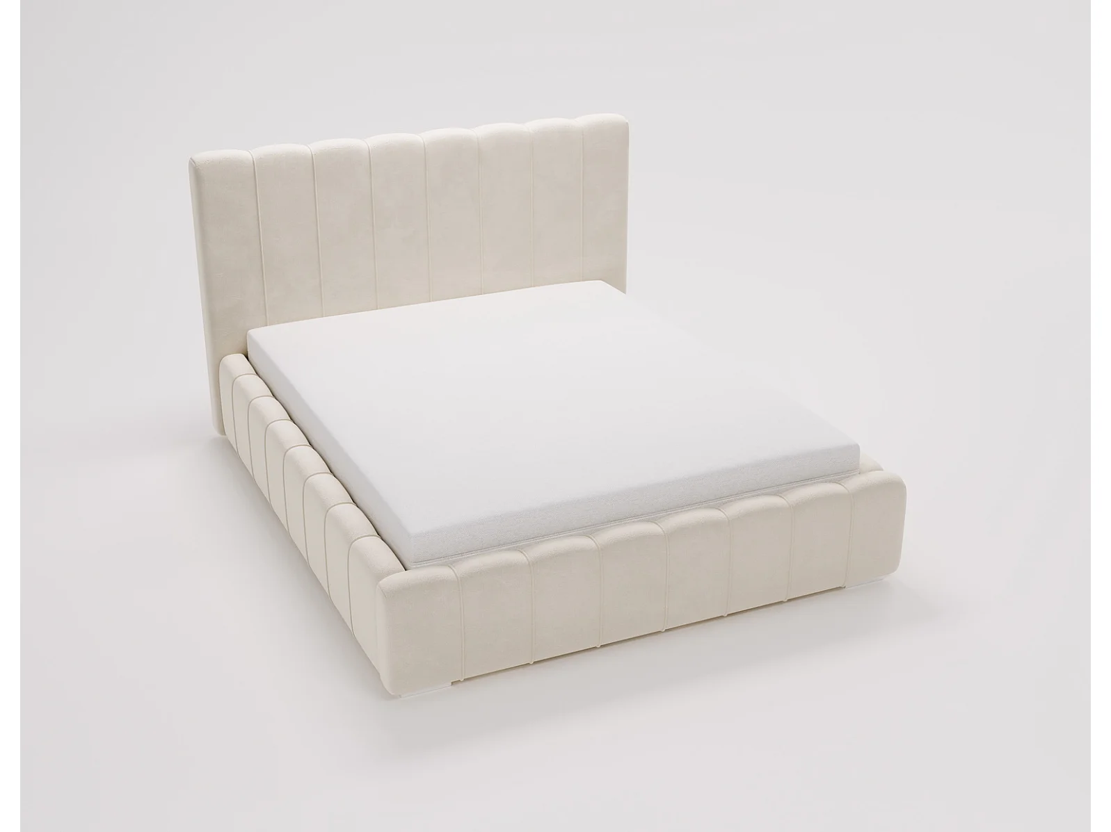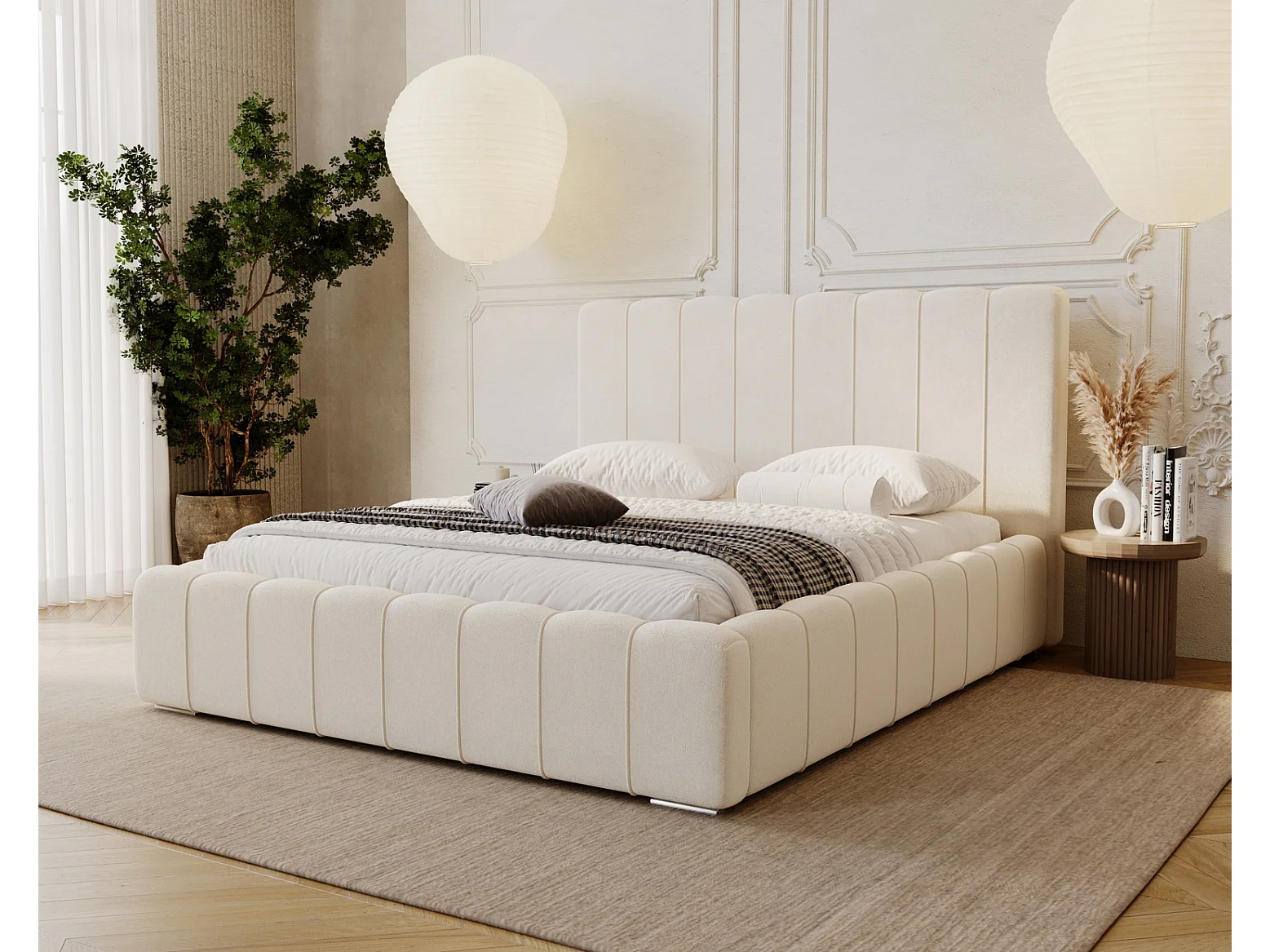 Emporius Lisbon lit avec rangement, lit adulte 140x200 sommier à lattes - lit coffre 140 x 200 - tissu velour Crème (Komodo 10)