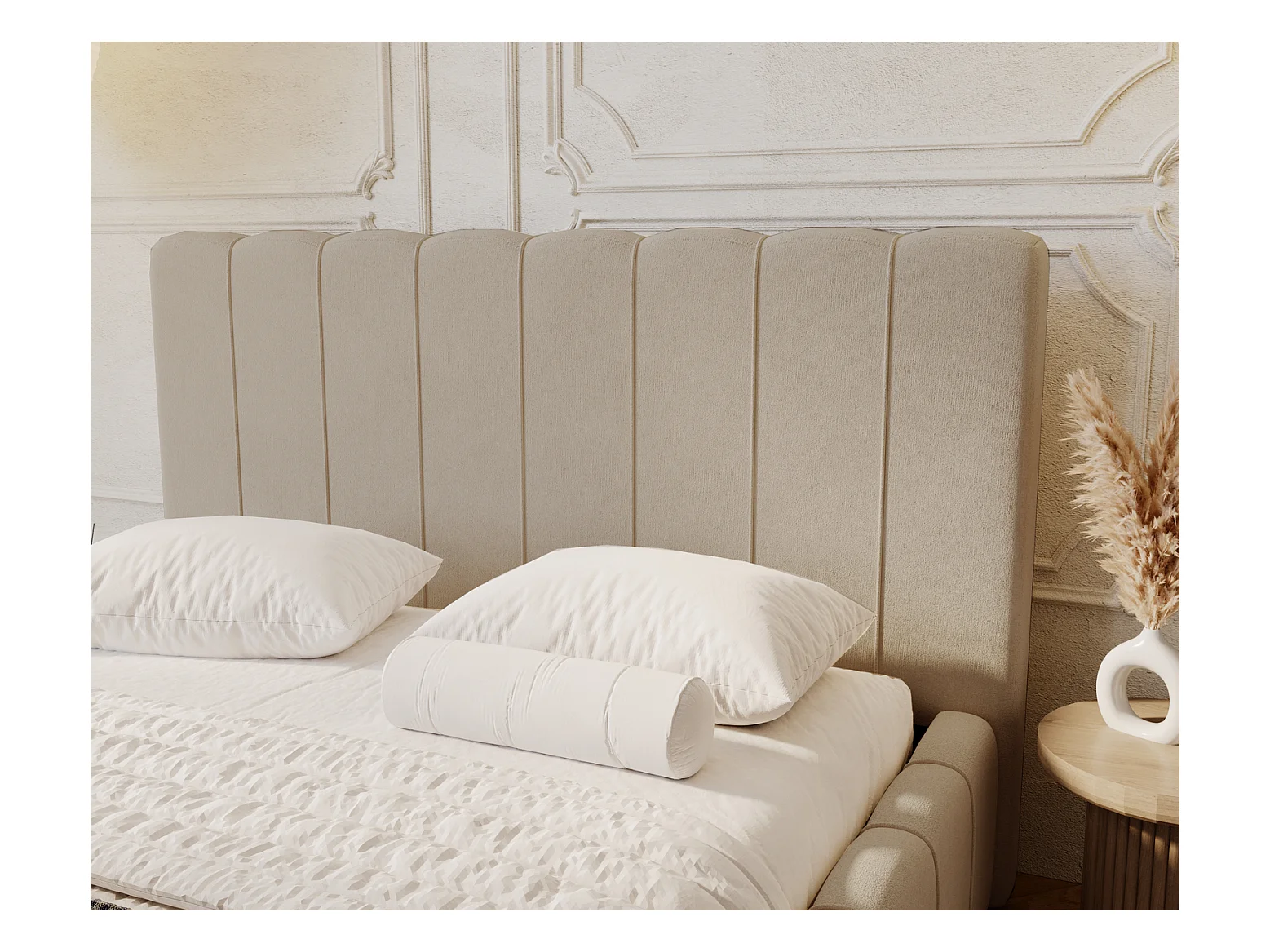 Emporius Avilla lit bouclé 180x200 avec sommier à Lattes, avec rangement - lit rembourré 180 x 200, lit Beige (Anthology 2)