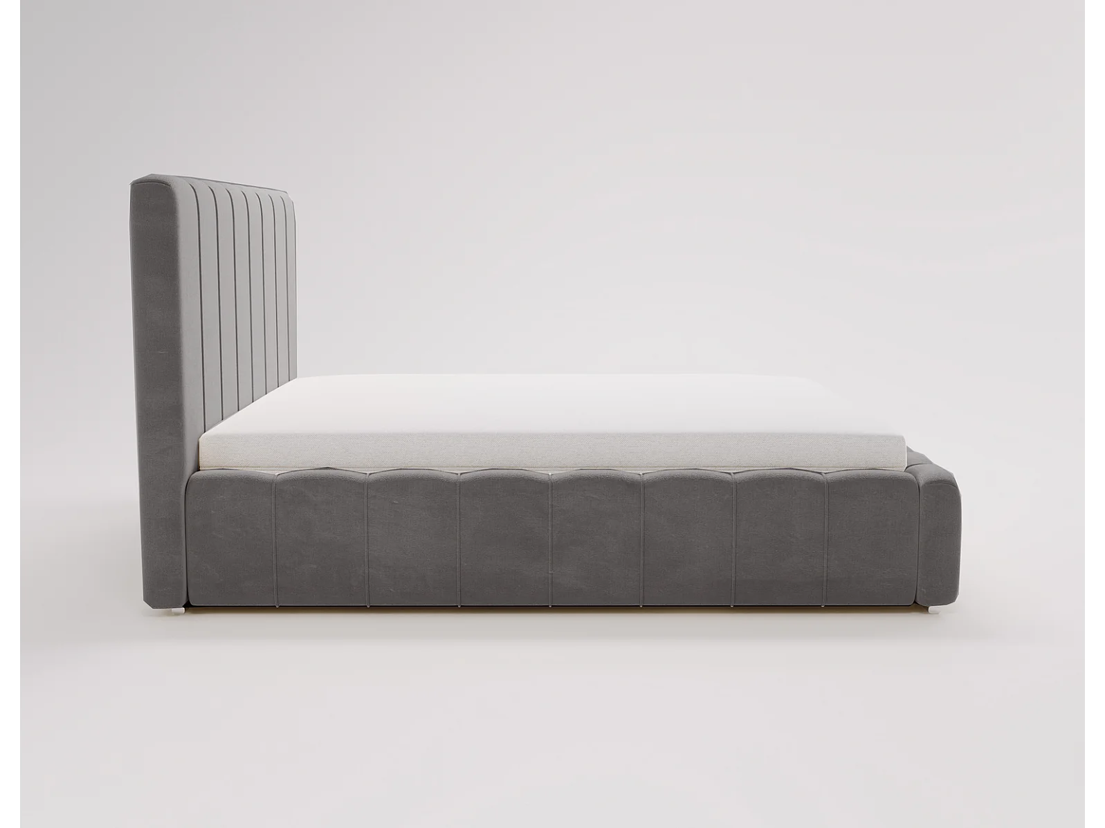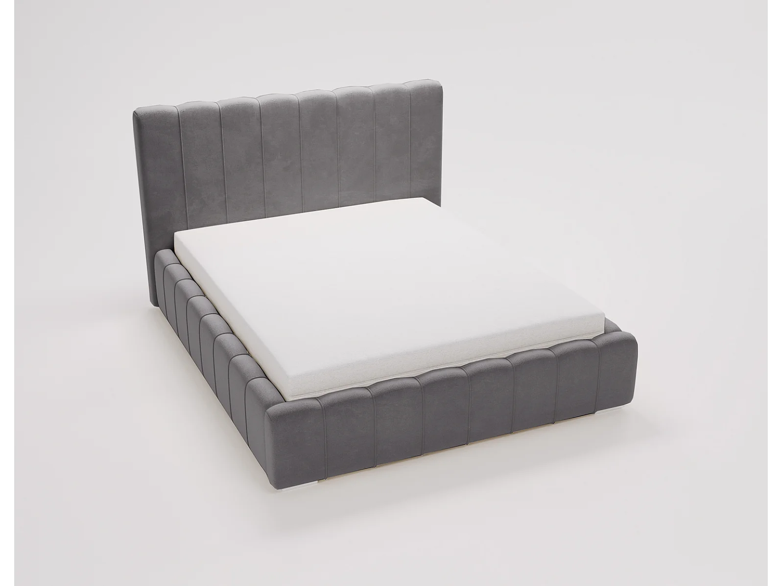 Emporius Lisbon lit avec rangement, lit adulte 180x200 sommier à lattes - lit coffre 180 x 200 - tissu velour Gris (Komodo 21)