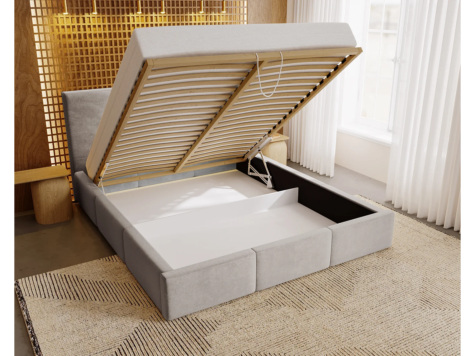 Emporius Lit 140x200 Lary - Lit avec rangement, Lit adulte rembourré - sommier à Lattes, tissu velours Gris clair (Magic Velvet 2218)