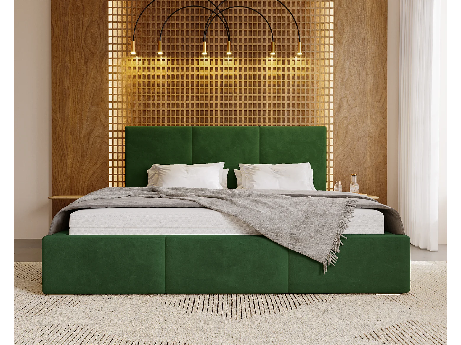 Emporius Lit 140x200 Lary - Lit avec rangement, Lit adulte rembourré - sommier à Lattes, tissu velours Vert (Magic Velvet 2225)
