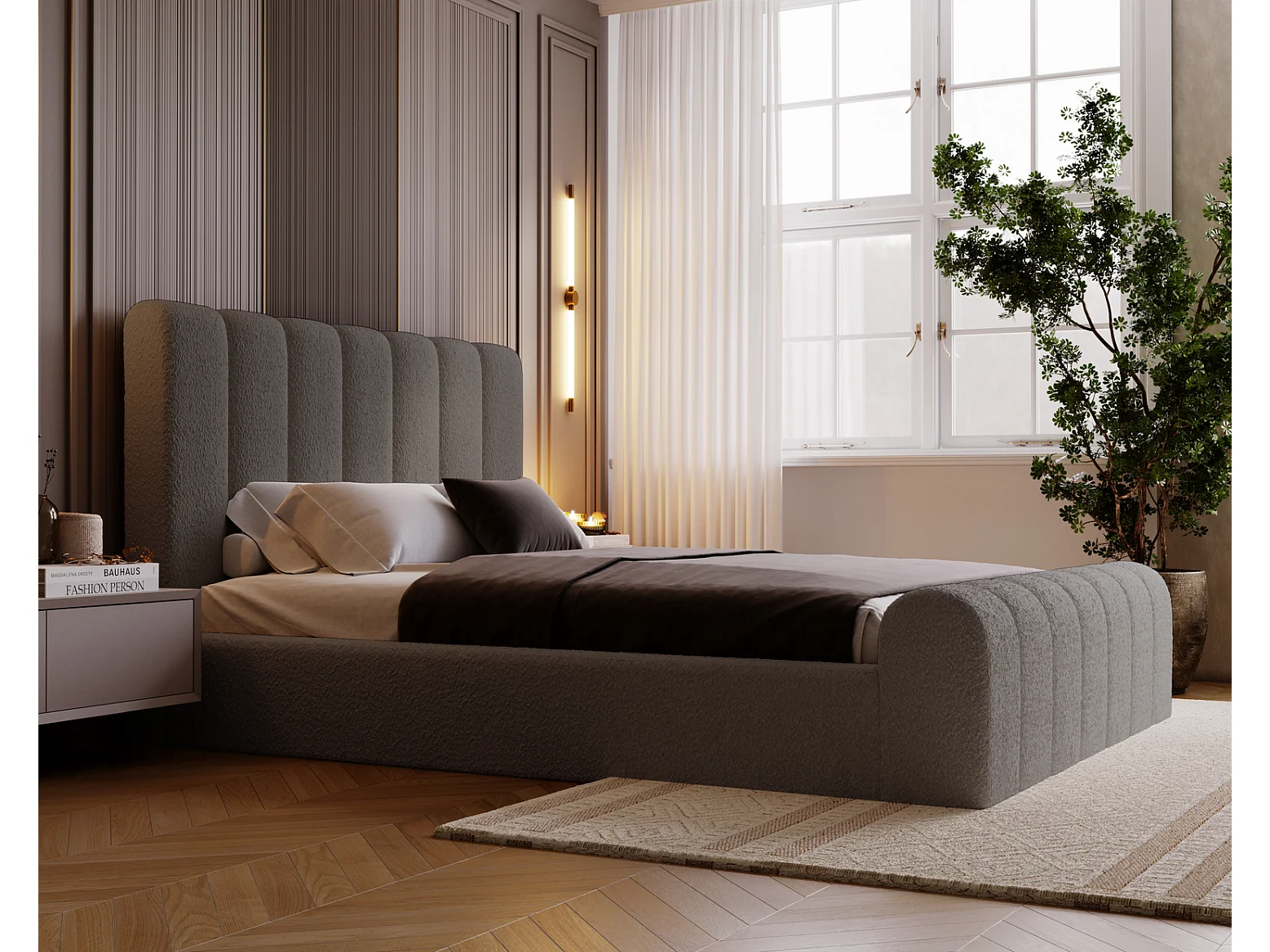 Emporius Lit 180x200 Valetta - Lit Rembourré avec Rangement, Sommier à Lattes, Lit adulte 180x200 bouclé - Gris foncé (Anthology 18)
