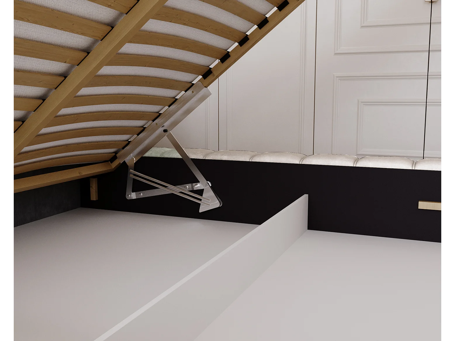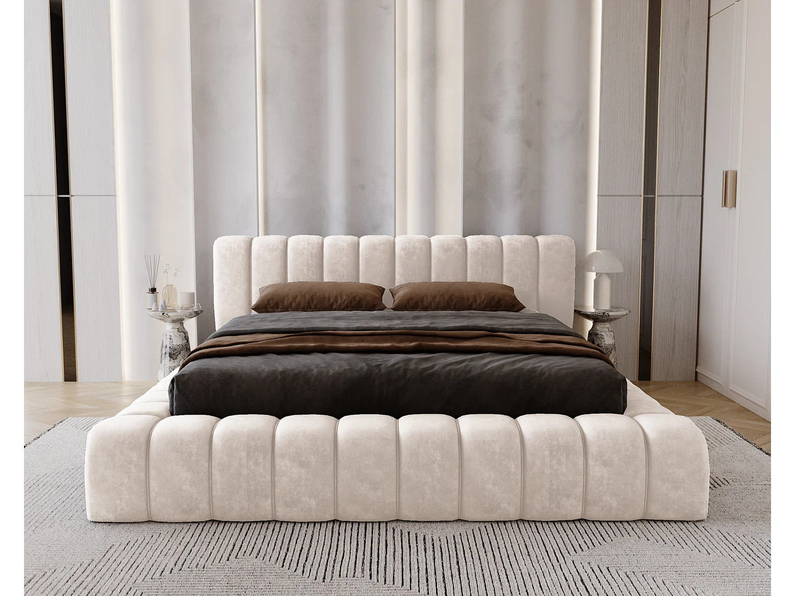 Emporius Lit avec Rangement 160x200cm Como, Lit capitonné, Lit adulte - Mousse épaisse, tissu Velvet Crème (Whisper 1)