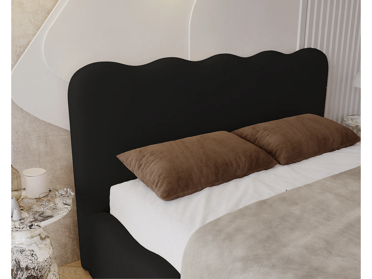 Emporius Lit avec Rangement, Lit double 160 x 200 cm Wave, Lit Noir (Elegance 21)