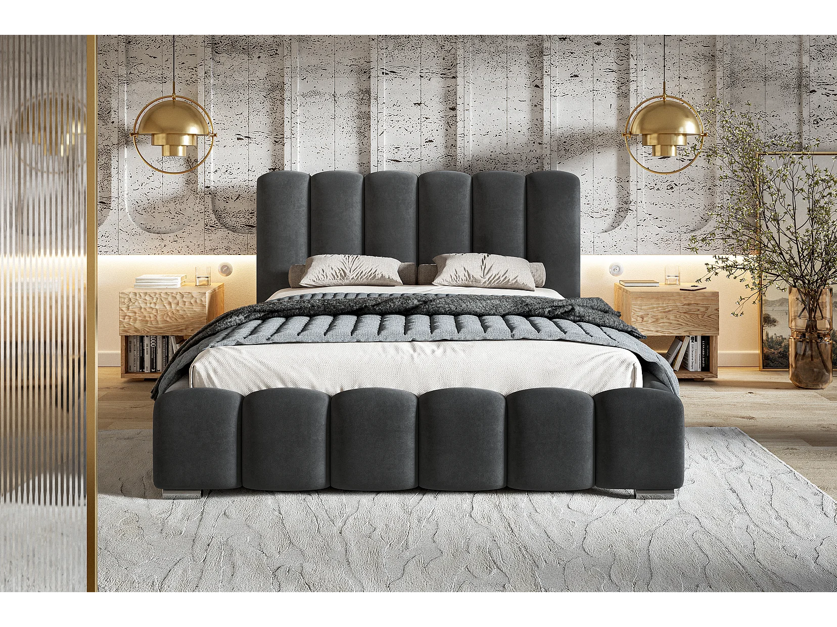 Lit capitoné 160x200 cm Pearl, sommier à lattes, lit velours 160x200 Gris foncé (Amor Velvet 4321)