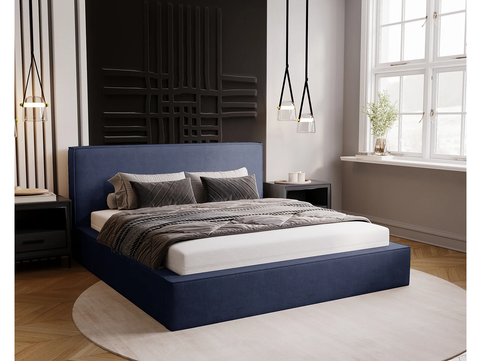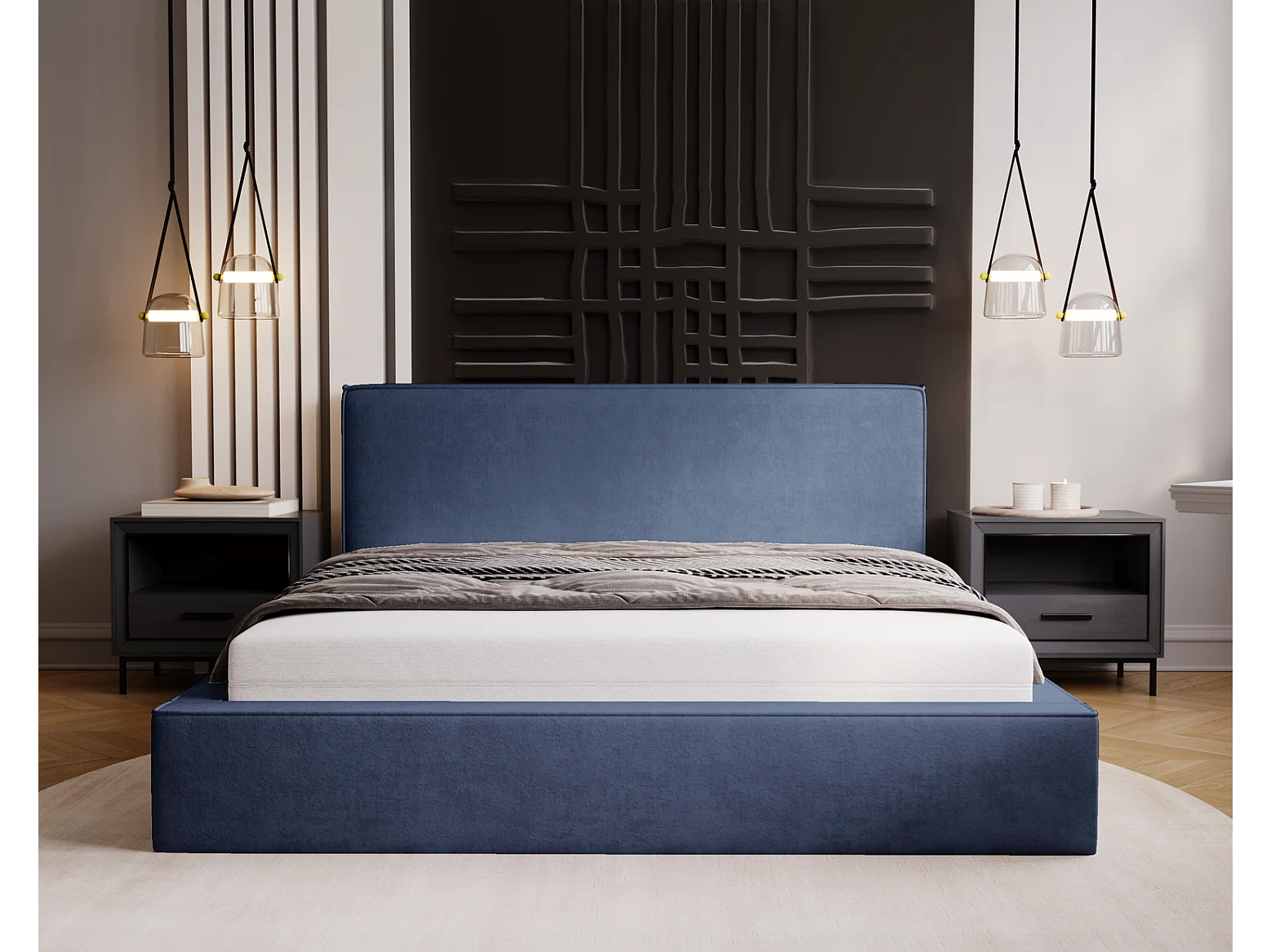 Emporius Lit double, lit adulte avec Rangement 180x200 cm Amare - Velour Bleu (Komodo 50)