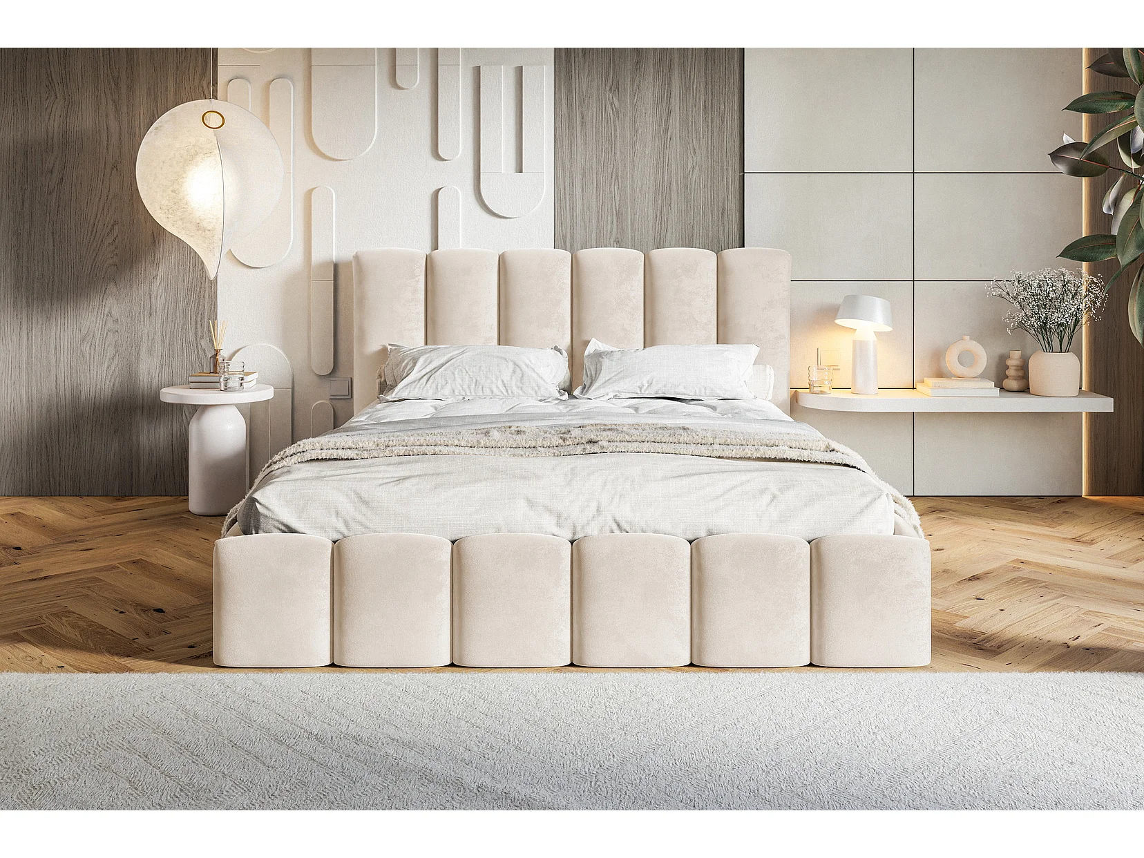 Emporius Lit rembourré 140x200 Aron - Lit double avec Rangement, Lit 140x200 cm Beige (Amor Velvet 4304)