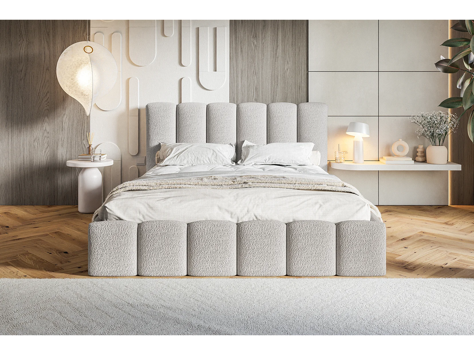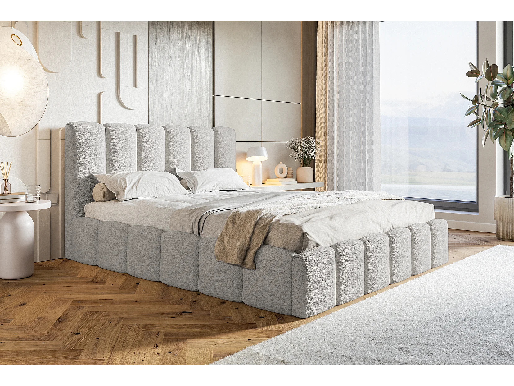 Lit rembourré 160x200 cm avec rangement Palermo - Lit double 160x200 cm, tissu bouclé Gris clair (Anthology 15)
