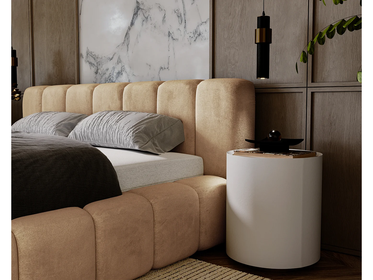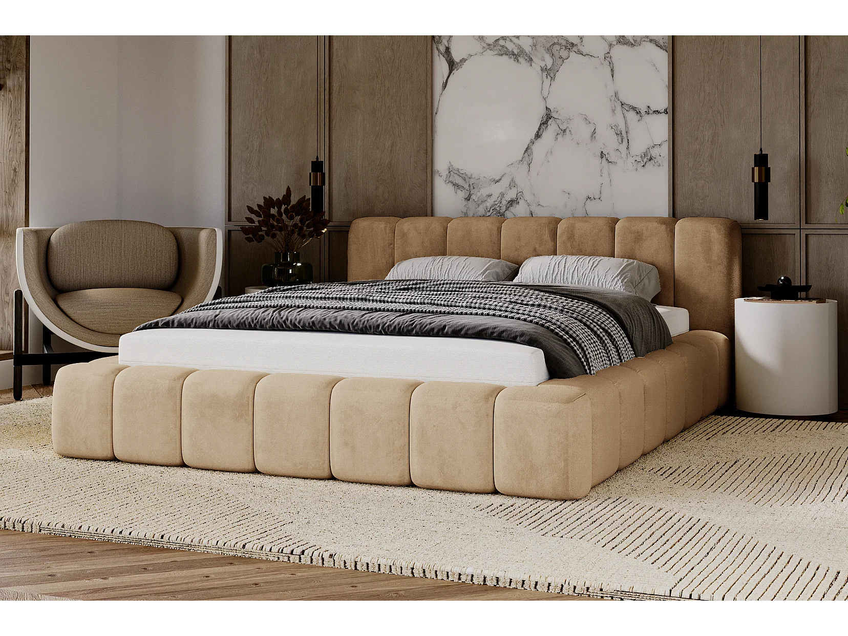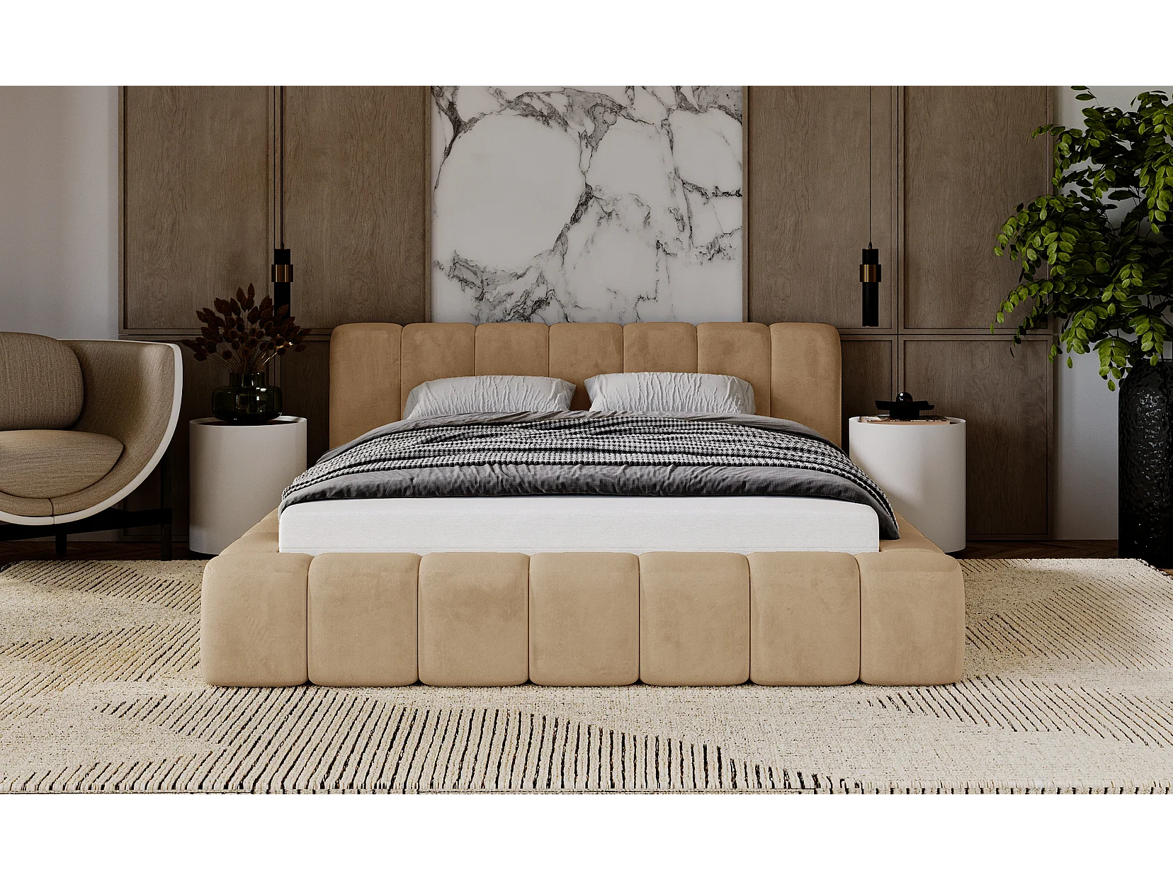 Emporius Lit rembourré 160x200 Bolonia - Lit adulte, lit capitonné, Lit double avec Rangement - Beige foncé (Amor Velvet 4302)