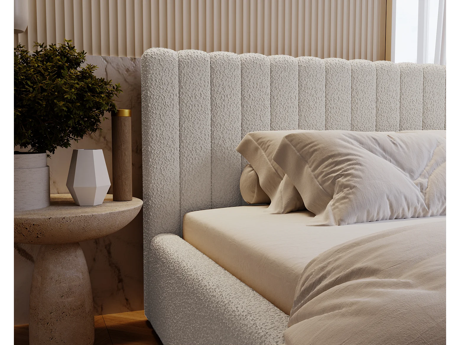 Emporius Lit Rembourré 160x200 cm Billo - lit double avec Rangement, Tête de Lit - Lit adulte, Chambre d'Adolescent - Bouclé Gris clair (Anthology 15)