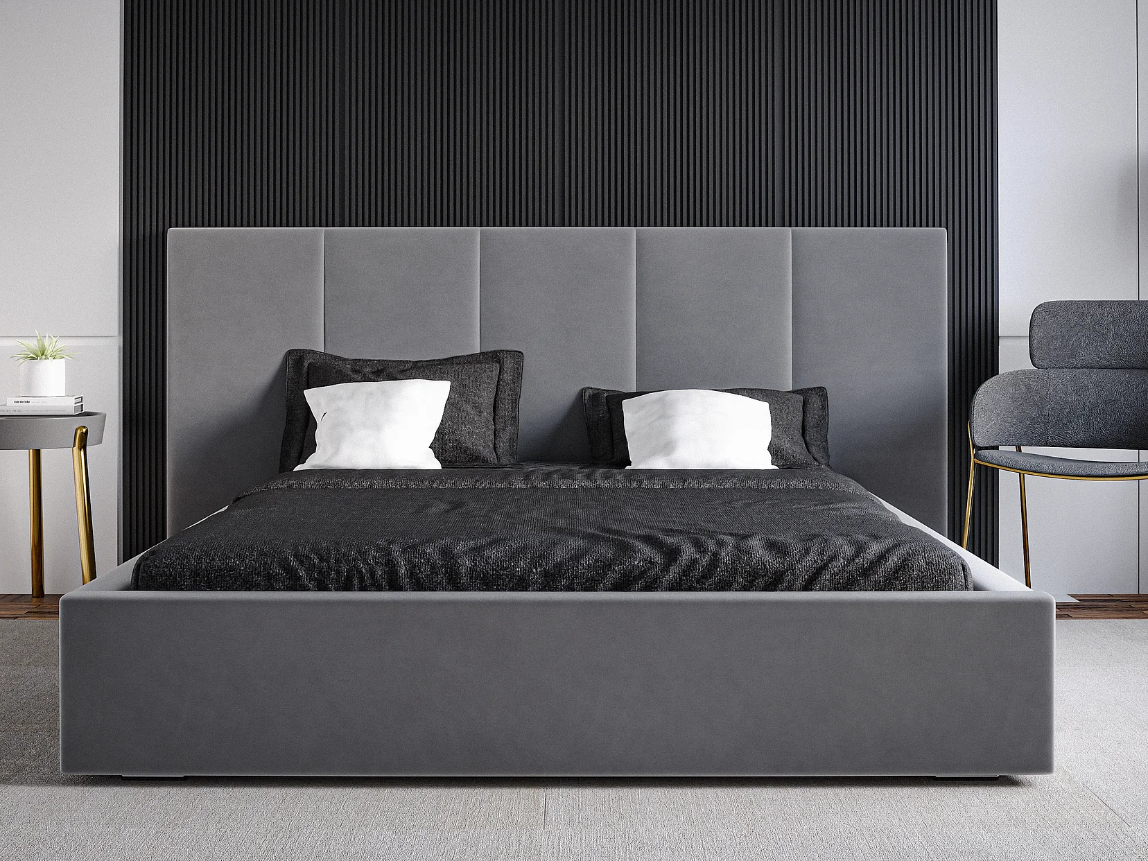 Emporius Lit rembourré 180 x 200 cm Praga - Lit avec Rangement, stoff Gris (Magic Velvet 2217)