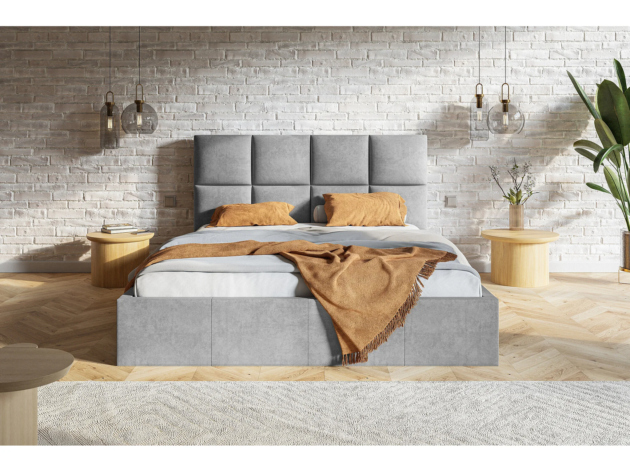 Lit rembourré 180 x 200 Fado - Lit adulte avec rangment, tête de lit - tissu velours - Gris clair (Jasmine 90)