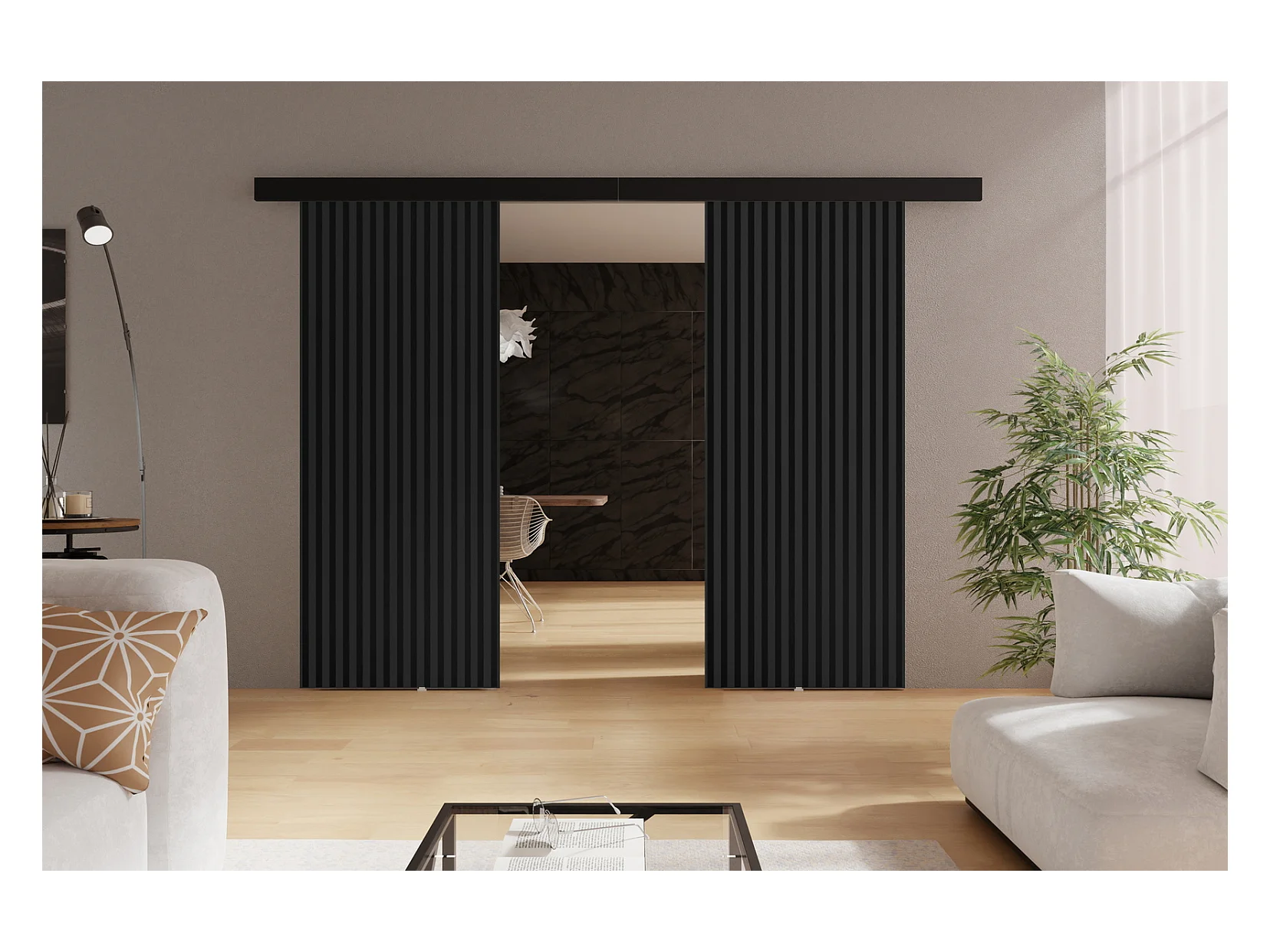 Emporius Porte coulissante 170 cm Belor Duo - imitation de lamelle, porte suspendue coulissante - Graphite