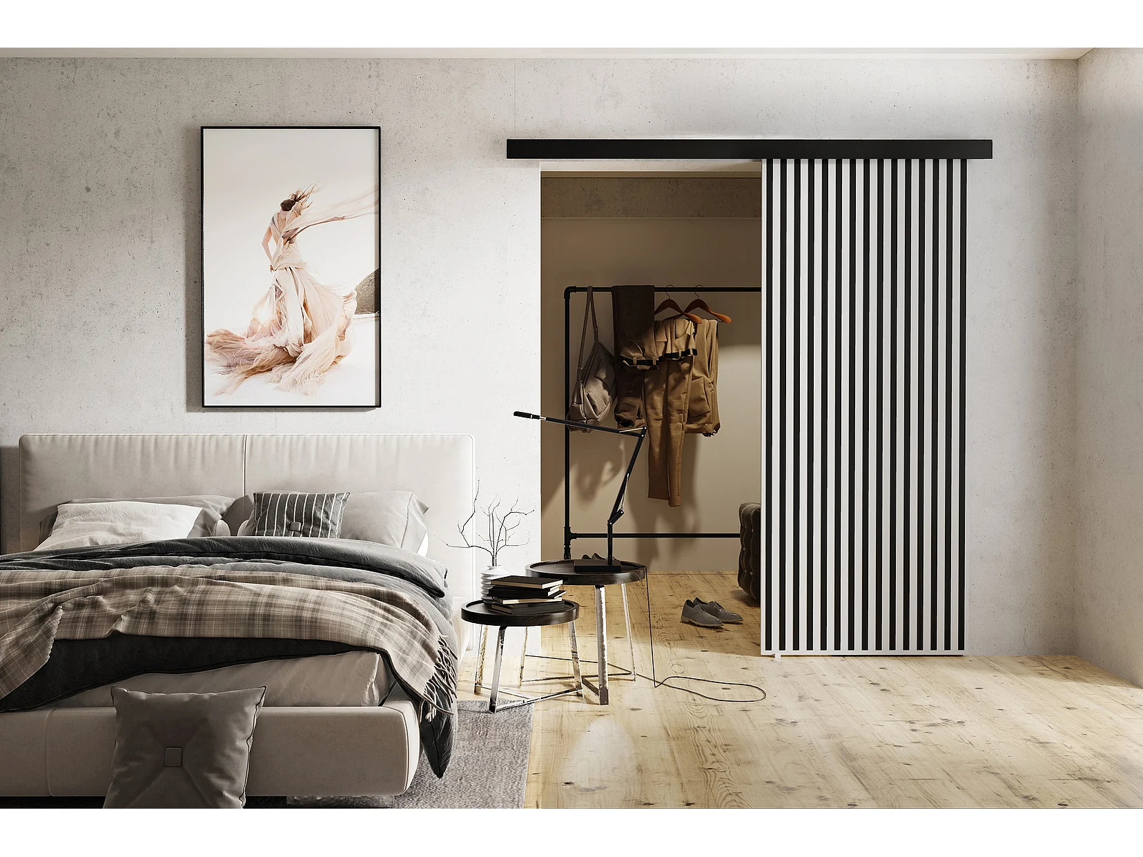 Emporius Porte coulissante 80 cm Belor - imitation de lamelle, porte suspendue coulissante - Blanc
