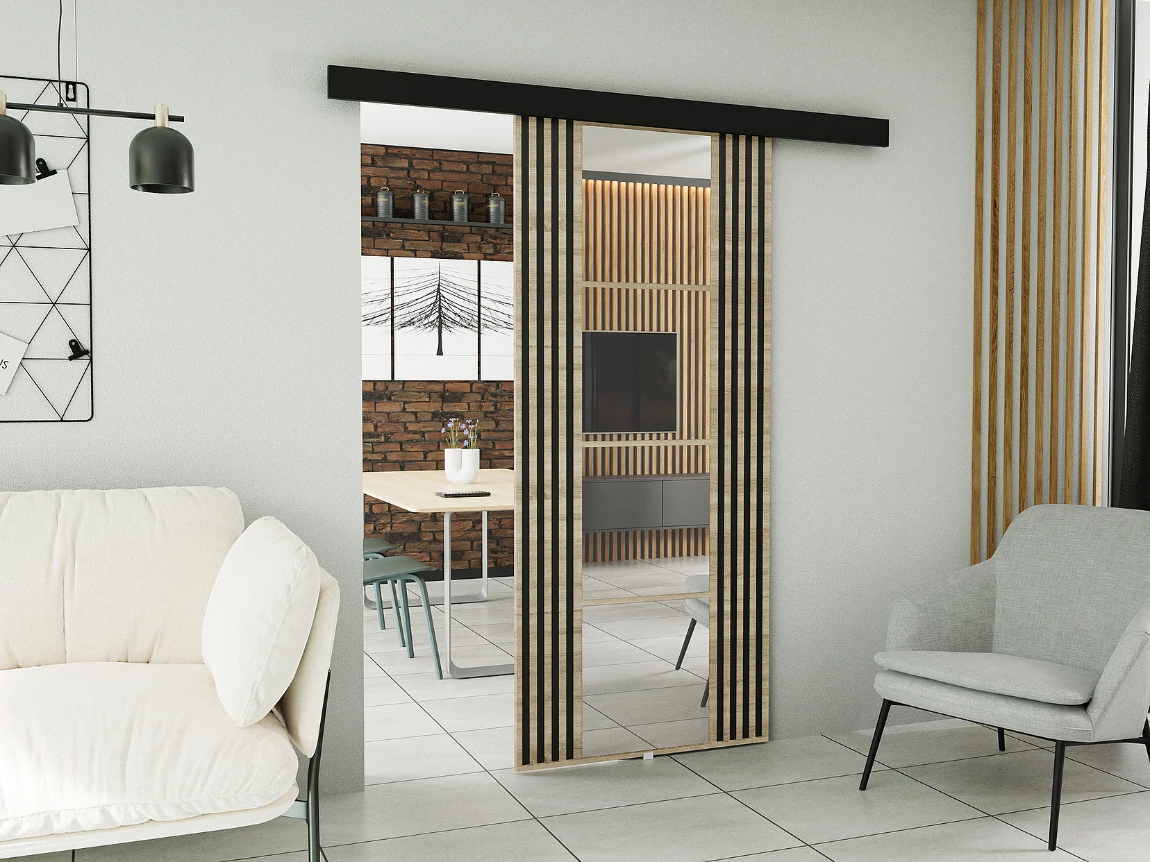 Emporius Porte coulissante avec miroir Elora - imitation de lamelle, porte coulissante 80 cm - Chêne sonoma