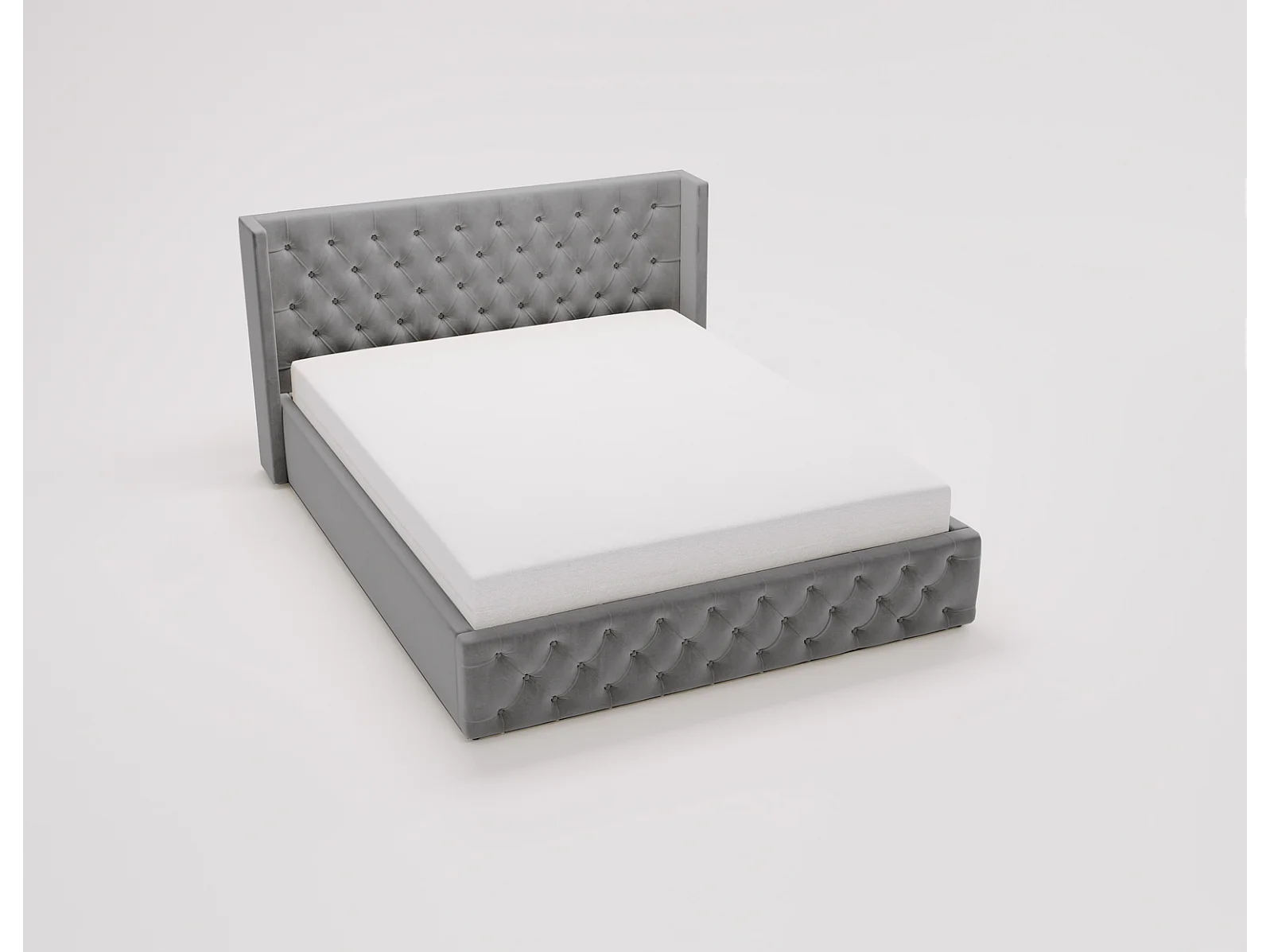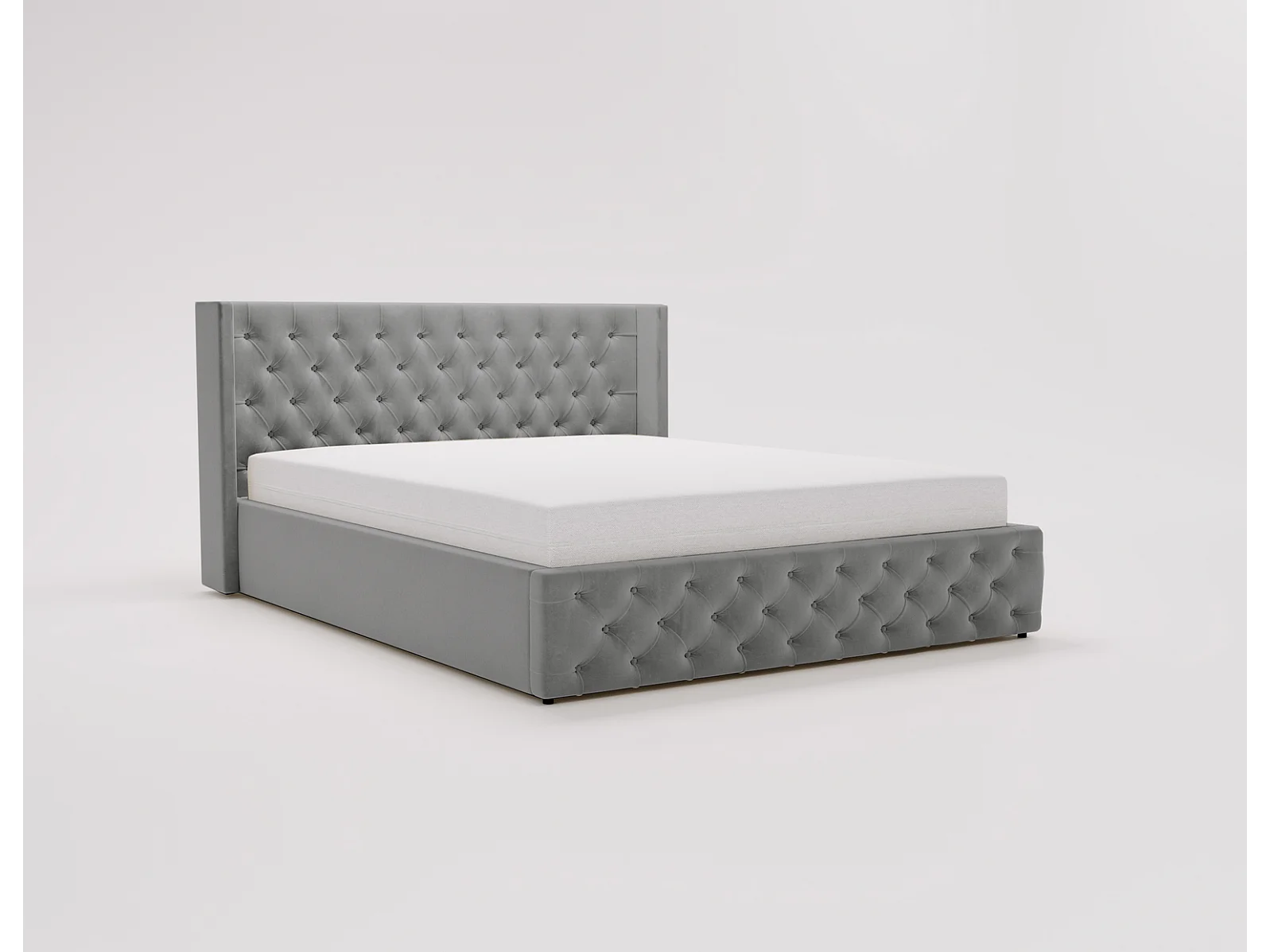 Emporius Rolia lit rembourré 140x200 lit avec rangement, sommier à lattes - lit coffre 140x200 tissu velour Gris (Magic Velvet 2217)