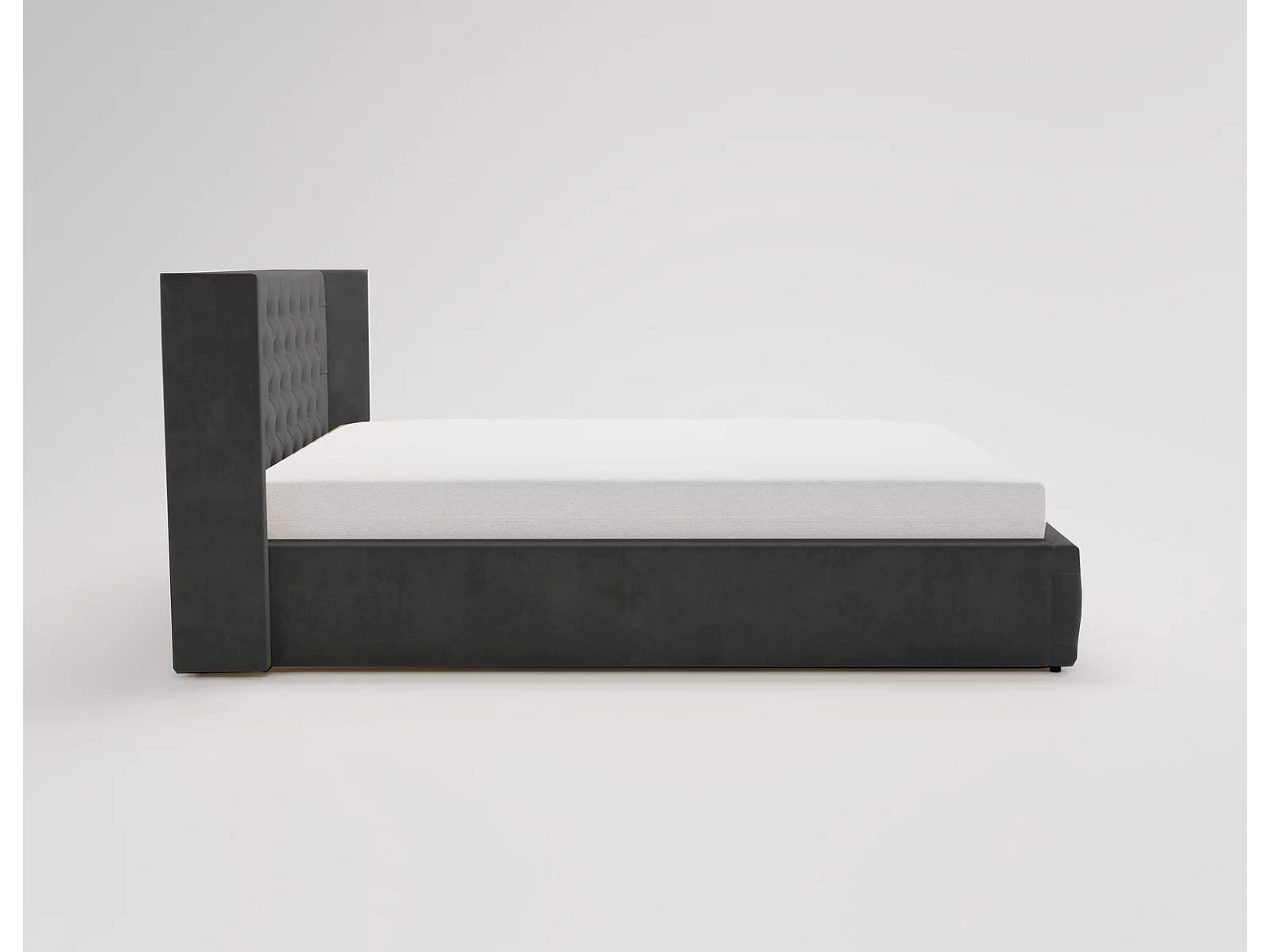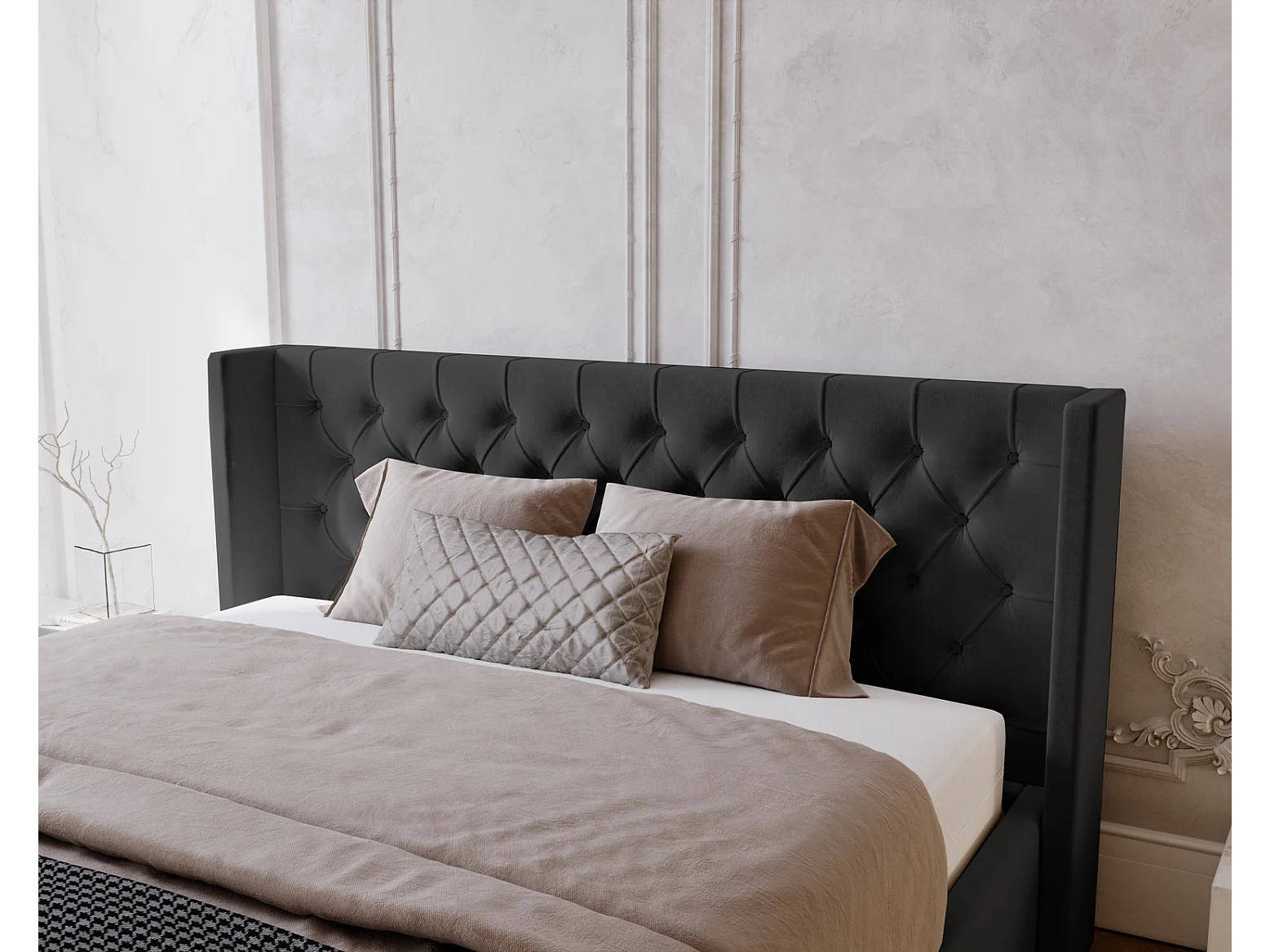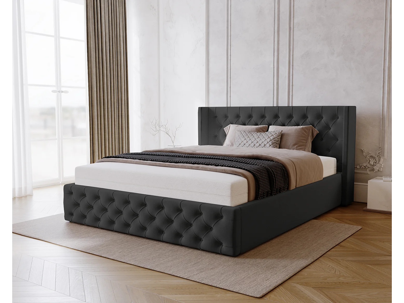 Emporius Rolia lit rembourré 140x200 lit avec rangement, sommier à lattes - lit coffre 140x200 tissu velour Noir (Magic Velvet 2219)