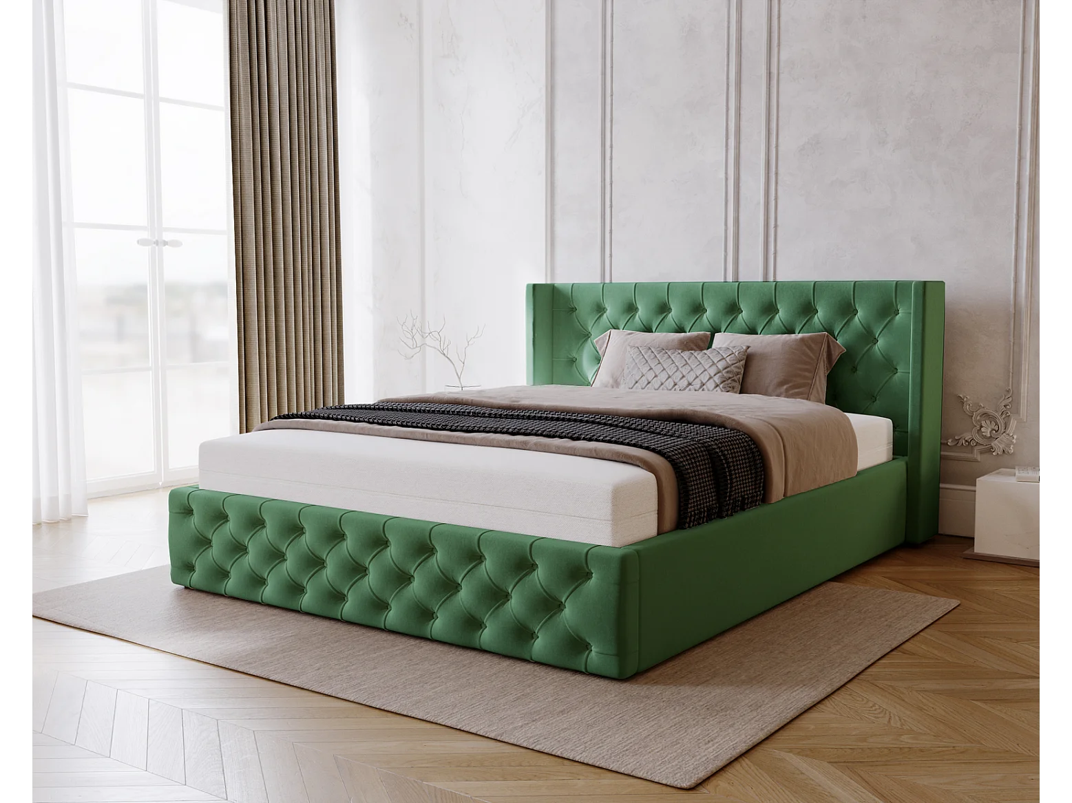 Emporius Rolia lit rembourré 200x200 lit avec rangement, sommier à lattes - lit coffre 200x200 tissu velour Vert (Magic Velvet 2225)