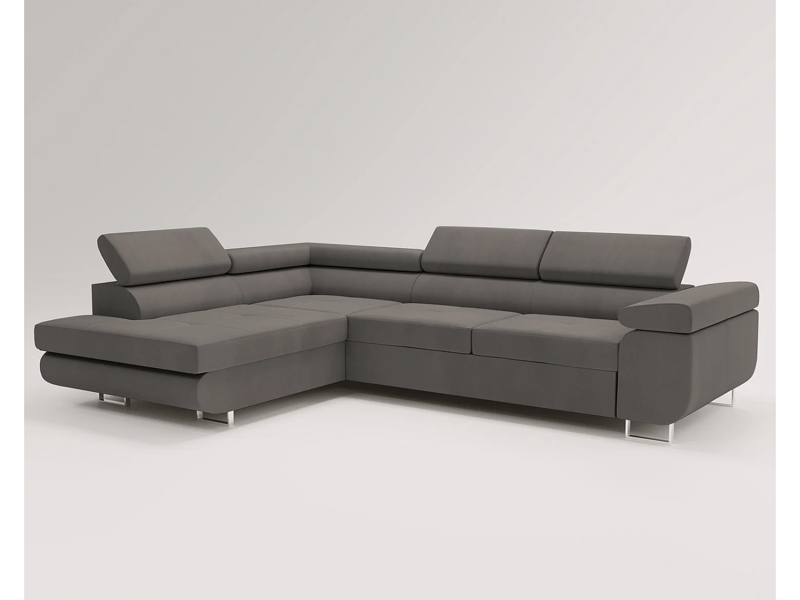Emporius Sorlo Gauche Canapé d'angle avec Coffre de Rangement, têtières réglables - Canapé d'angle Convertible Gris foncé (Amor Velvet 4321)