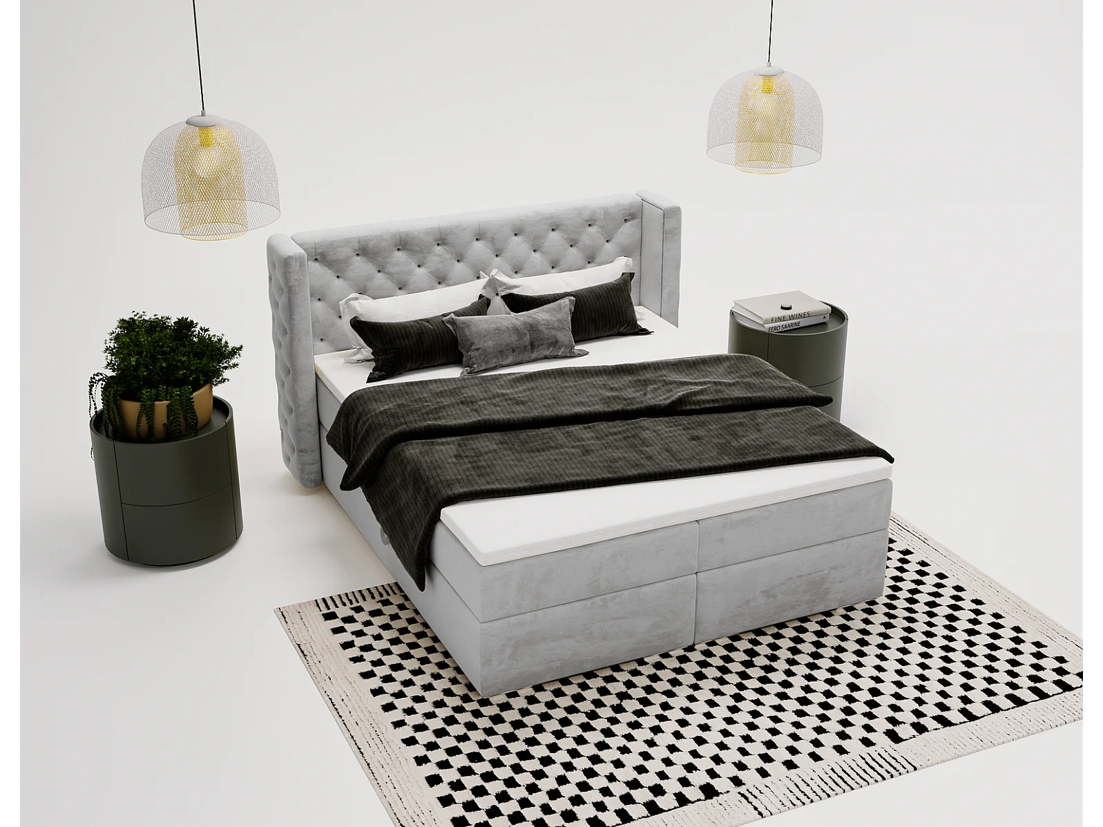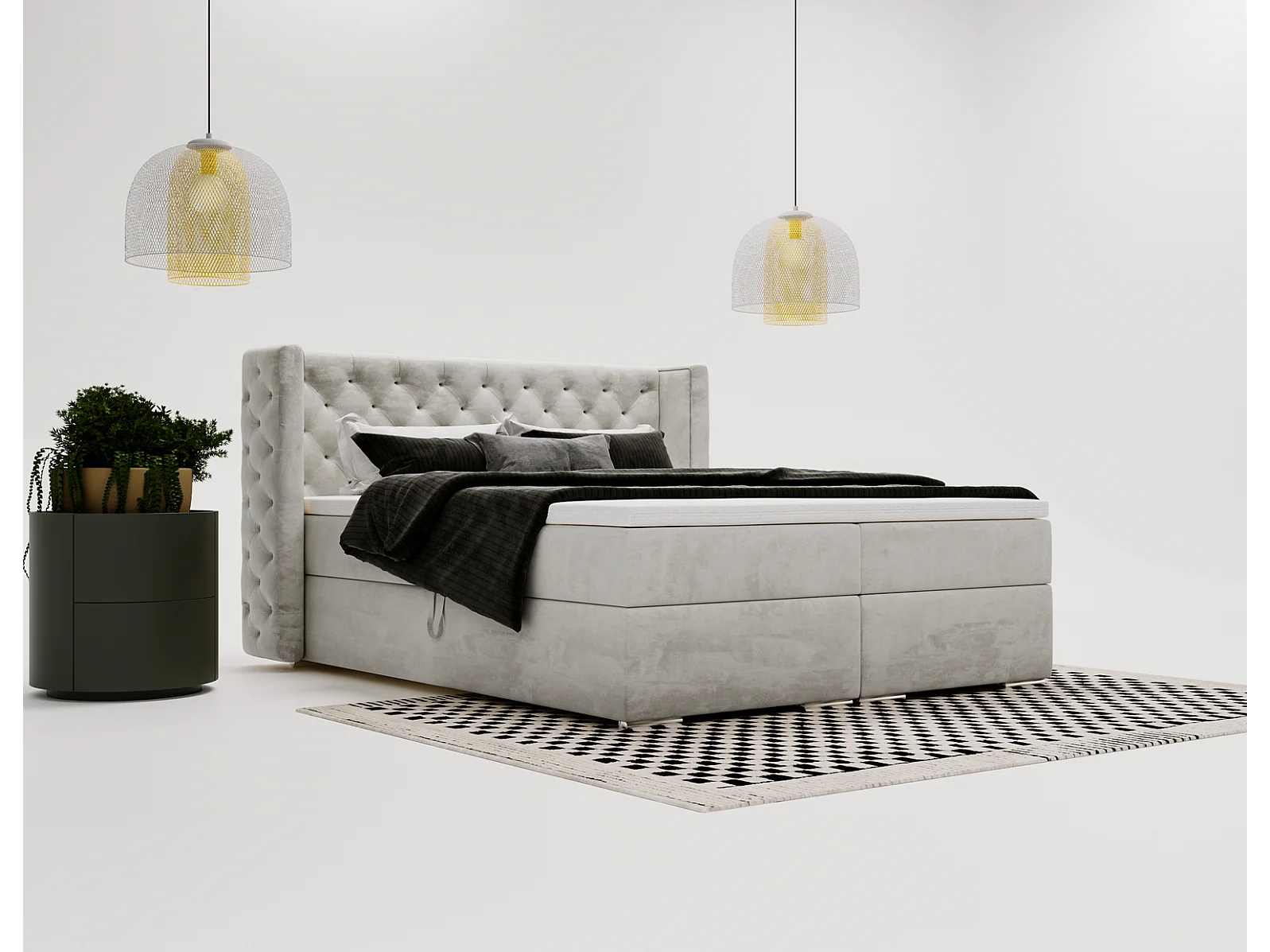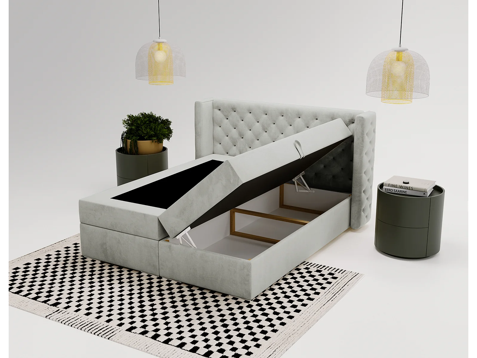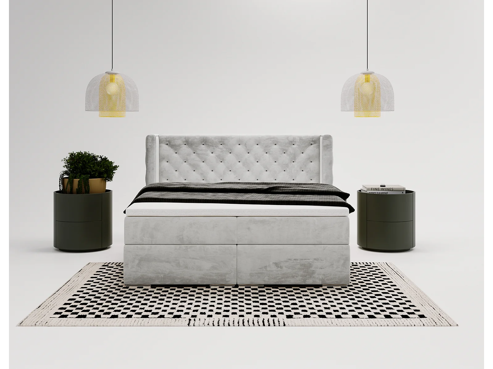 Emporius Valencia Box Lit adulte 140x200 cm - Lit avec matelas, Rangement, surmatelas, - lit double 140x200 Gris clair (Magic Velvet 2218)