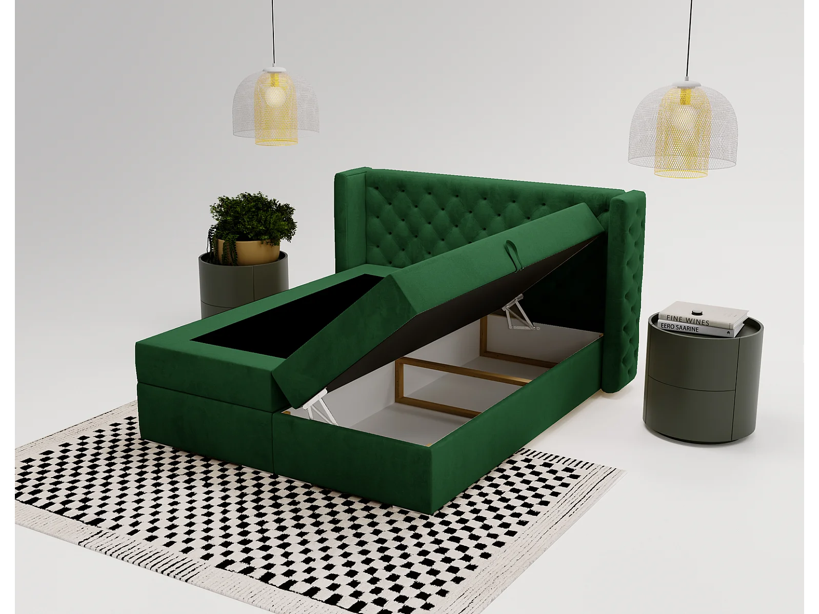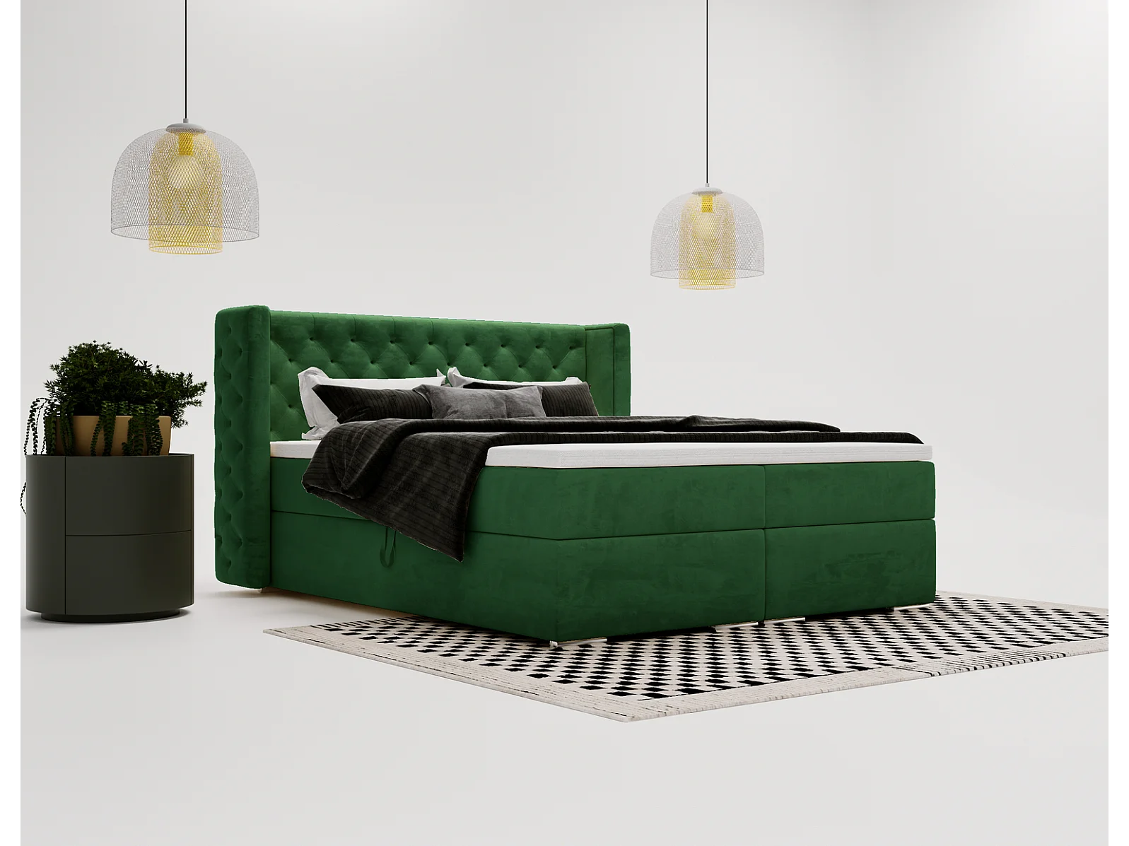 Emporius Valencia Box Lit adulte 140x200 cm - Lit avec matelas, Rangement, surmatelas, - lit double 140x200 Vert (Magic Velvet 2225)