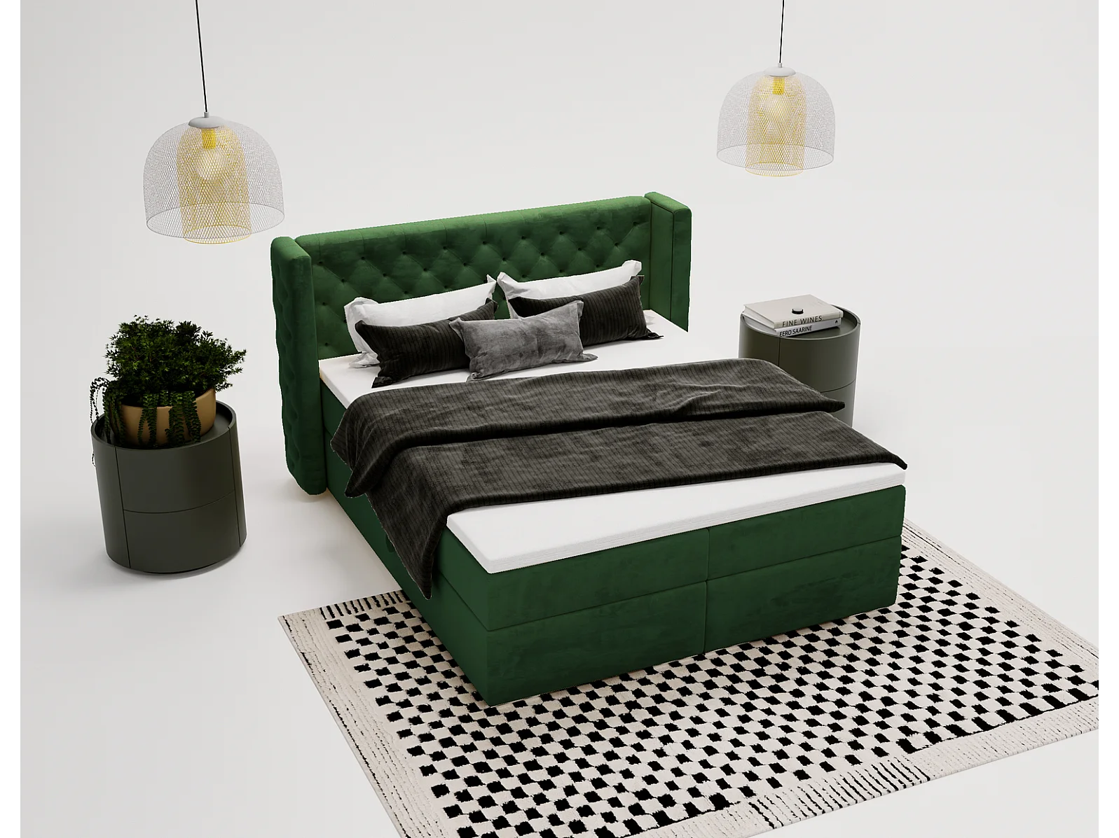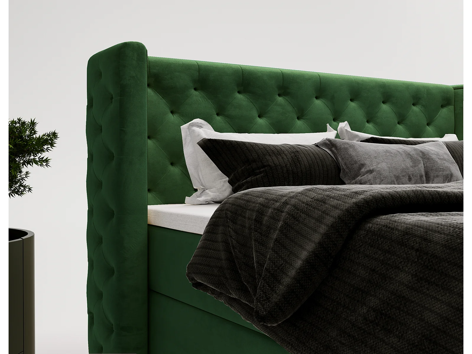 Emporius Valencia Box Lit adulte 160x200 cm - Lit avec matelas, Rangement, surmatelas, - lit double 160x200 Vert (Magic Velvet 2225)