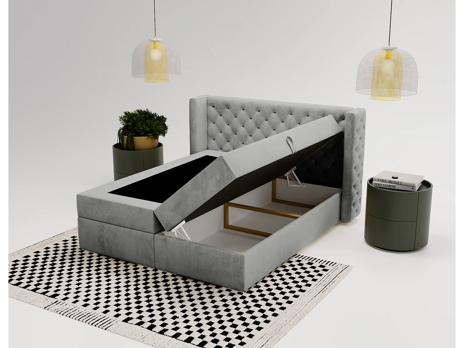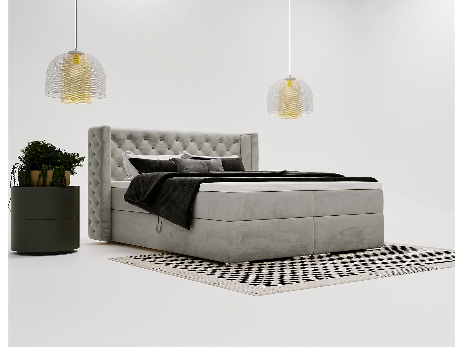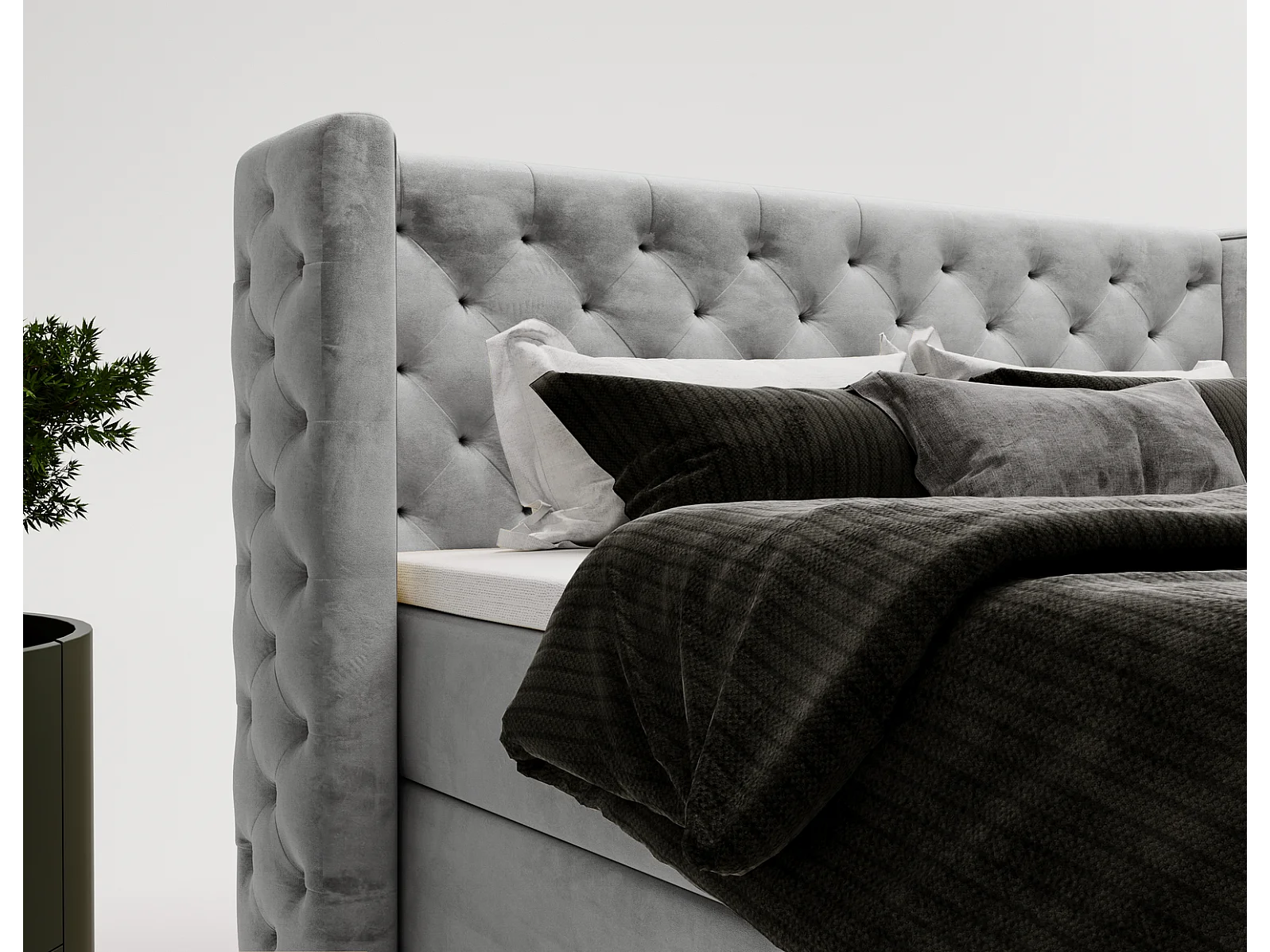 Emporius Valencia Box Lit adulte 180x200 cm - Lit avec matelas, Rangement, surmatelas, - lit double 180x200 Gris (Magic Velvet 2217)